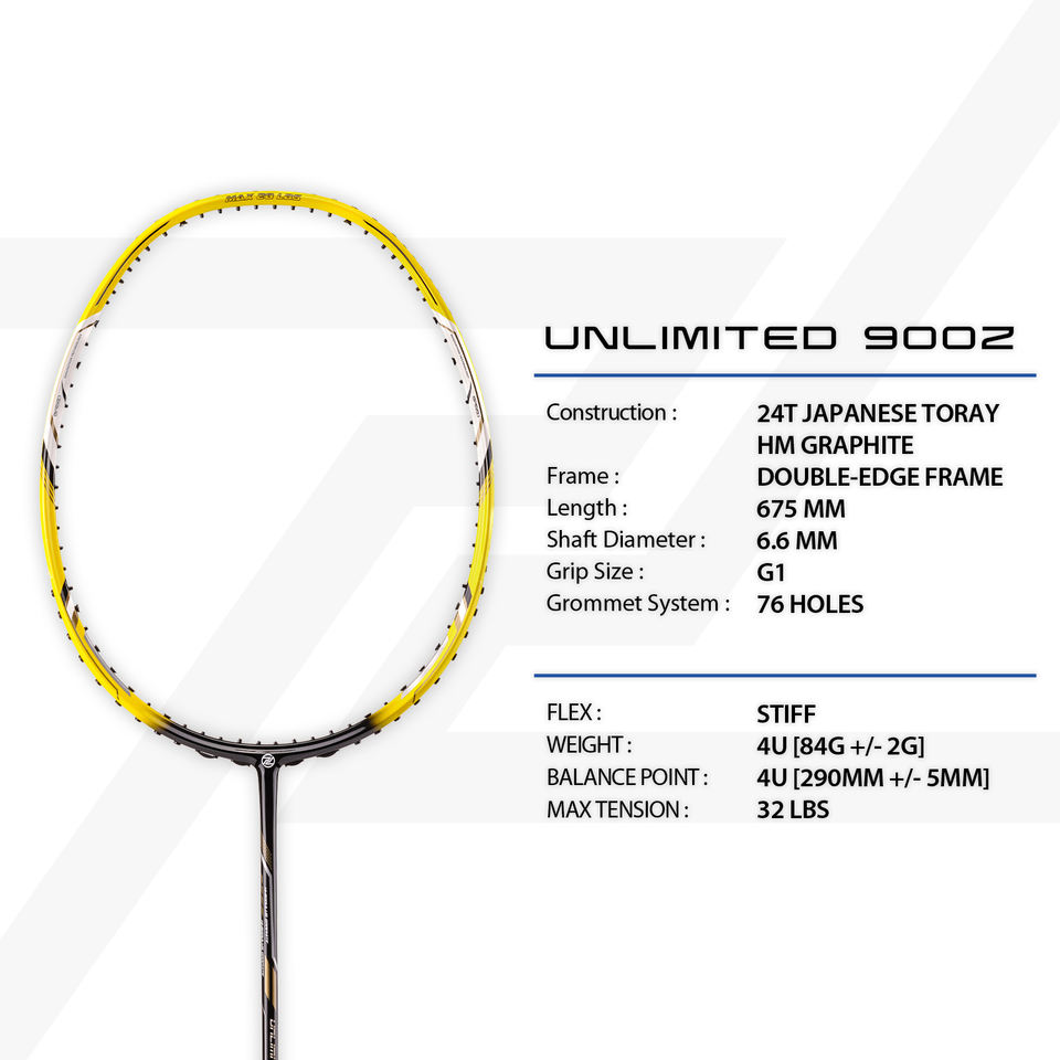 PROTECH UNLIMITED 900Z XP (สีเหลือง/สีดำ)(4UG1)(สูงสุด 28 ปอนด์) (ระดับเริ่มต้นสำหรับเด็ก) ไม้แร็กเก็ตแบบแข็งพร้อมด้ามจับ PU