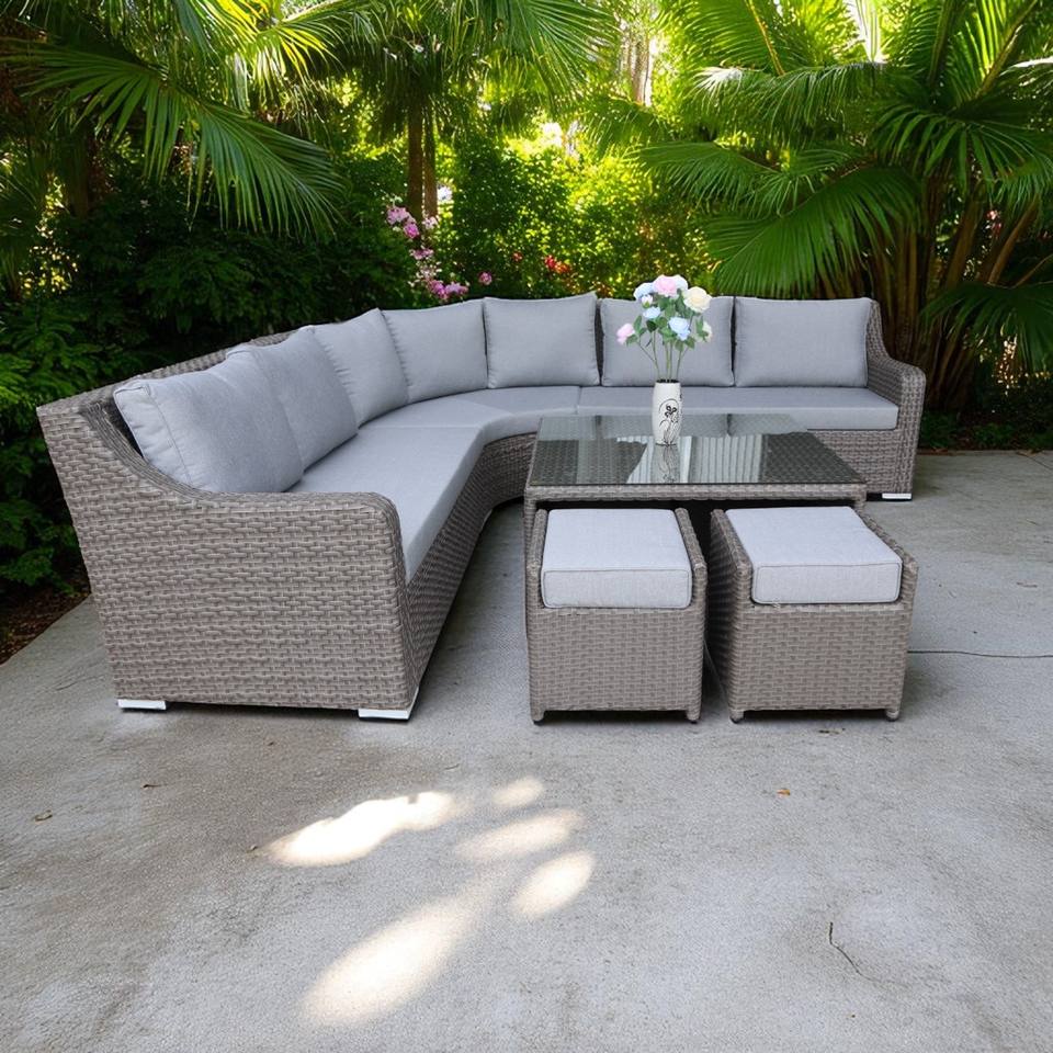 ชุดเฟอร์นิเจอร์หวายสำหรับลานบ้าน PRSF-ATV2 ทนทานทุกสภาพอากาศ โซฟาหวายแบบแยกส่วนพร้อมโต๊ะน้ำชาทรงสี่เหลี่ยม