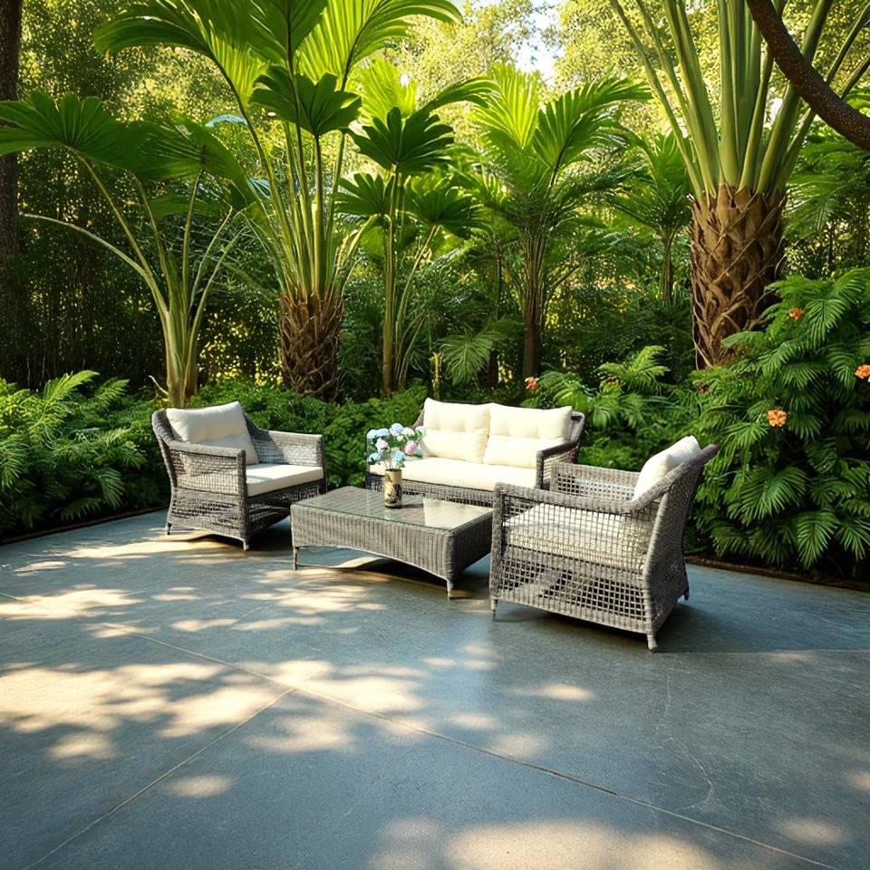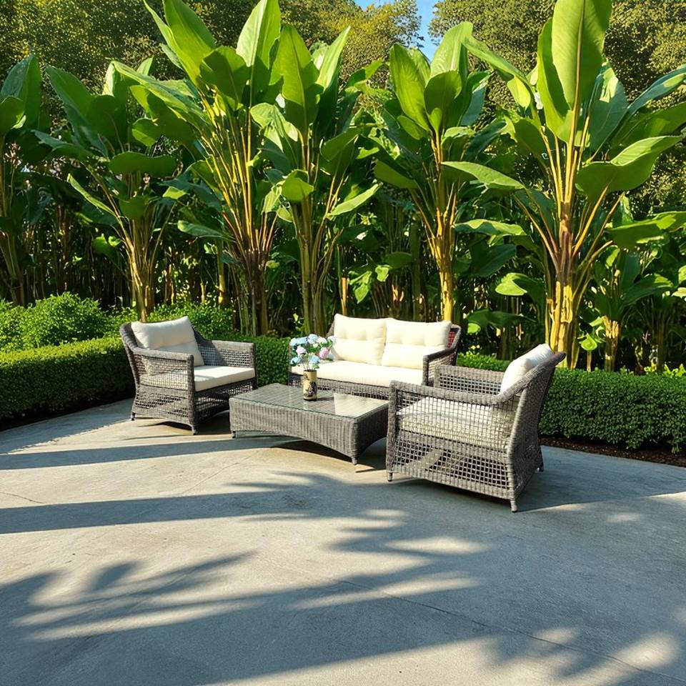 เฟอร์นิเจอร์กลางแจ้งโพลีหวาย PRSF-E1สไตล์เอเชียสำหรับห้องนั่งเล่นโรงแรมวิลล่าห้องรับประทานอาหารห้องนอนสวน