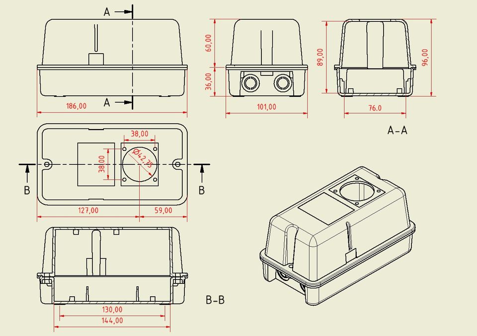 PS-14H16 High Profile plastic enclosure for Internal and External SCHUKO Sockets IP42 for Power Supply DIY project box
