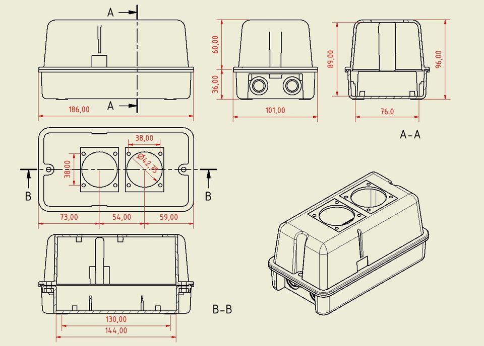 กล่องกระจายไฟ ABS รุ่น PS-14H6 แบบติดผนัง พร้อมมาตรฐานป้องกัน IP40 สำหรับเต้ารับ SCHUKO สองช่อง