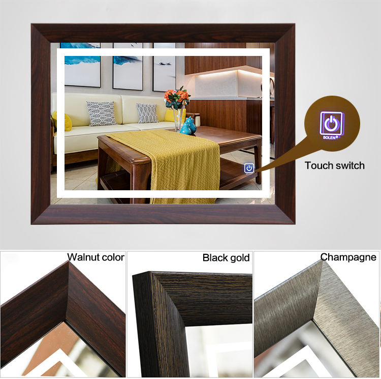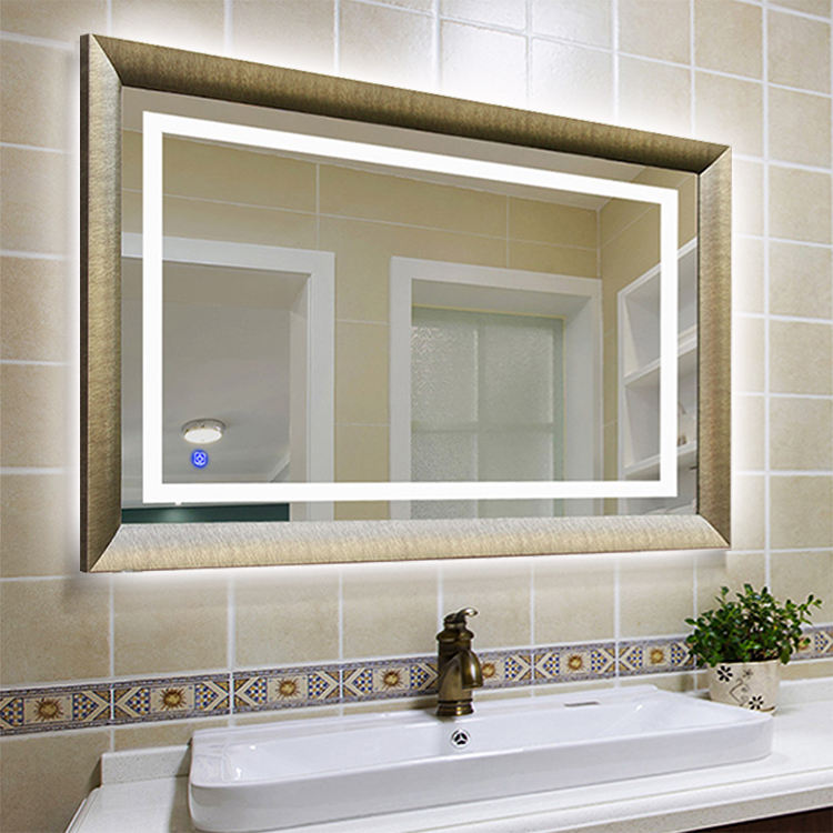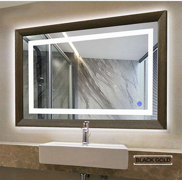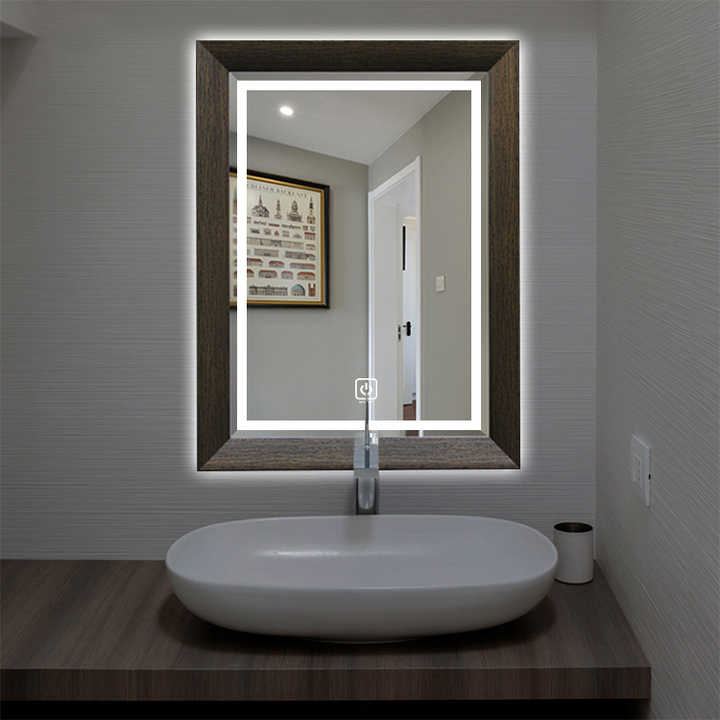 PS MDF กรอบไฟ LED เซ็นเซอร์สัมผัสสวิทช์ห้องน้ํา Backlit โบราณกระจก LED วินเทจ