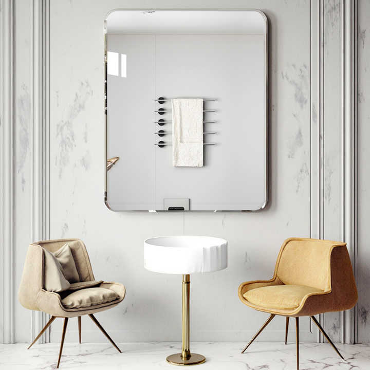 กระจกทรงสี่เหลี่ยมหรูหราพร้อมกาวในตัววัสดุ PS สำหรับตกแต่งห้องน้ำตู้เสื้อผ้าและผนังห้องนอนแบบไร้กรอบ