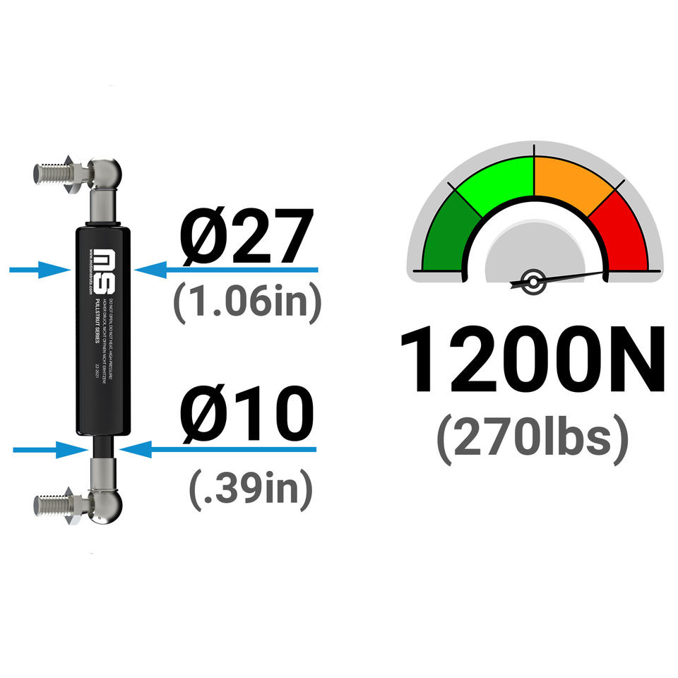 PS10BJ-152-305-F1สปริงแก๊สยืด305มม. รับแรงดึงประตูท้ายรถสำหรับสันทนาการได้รับการรับรองมาตรฐาน ISO 152มม.