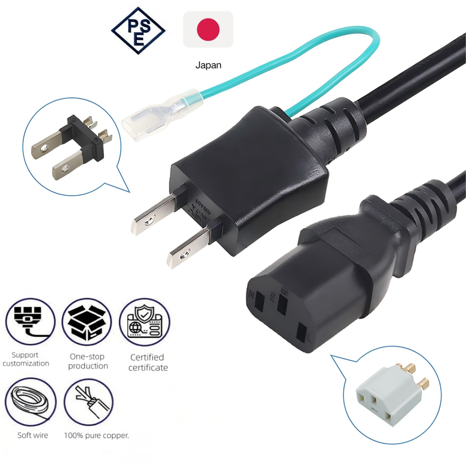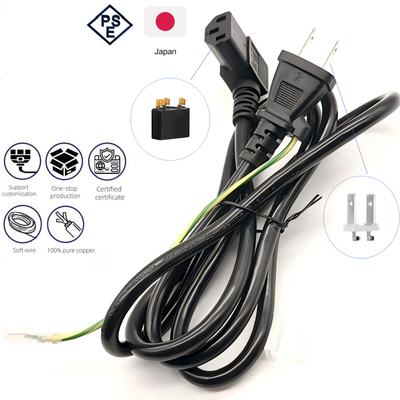 สายไฟ2ขาแบบ PSE มีความยืดหยุ่นสำหรับเครื่องชาร์จแล็ปท็อป