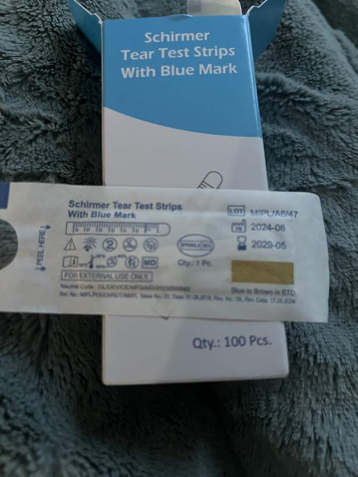 แผ่นทดสอบน้ำตา PSM Schirmer แบบมีรอยบากสีน้ำเงิน (100 แผ่น/กล่อง) ได้รับการรับรองมาตรฐาน CE ระดับ Class I สำหรับการตรวจวัดทางจักษุวิทยา รับประกัน 1 ปี