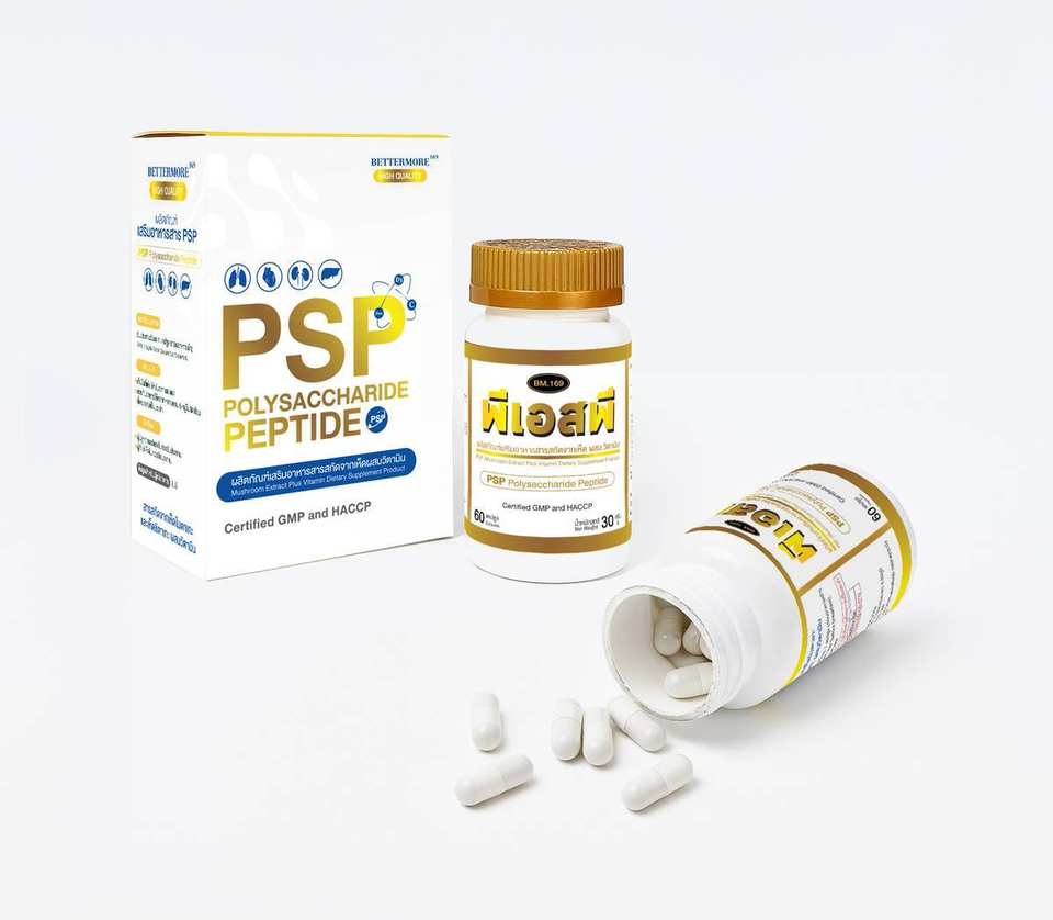 ผลิตภัณฑ์เสริมอาหารจากสมุนไพรยี่ห้อ PSP สารสกัดจากเห็ดที่ปลูกในป่าโพลีแซคคาไรด์เปปไทด์คุณภาพสูงจากญี่ปุ่น