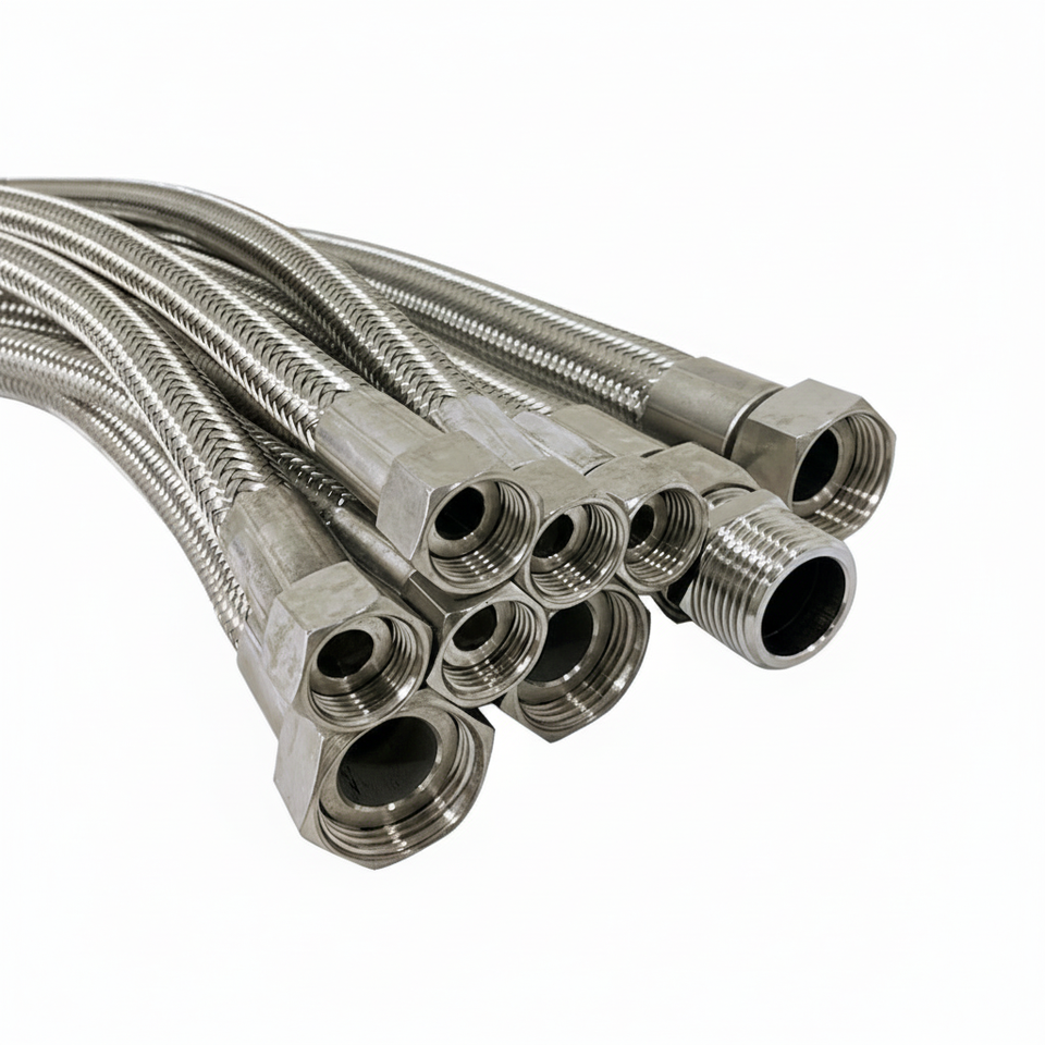 สายถัก PTFE R14 SAE100ลวดสเตนเลสสตีลความดันสูง AN3 316L ลูกฟูกยืดหยุ่นสำหรับ swagelok