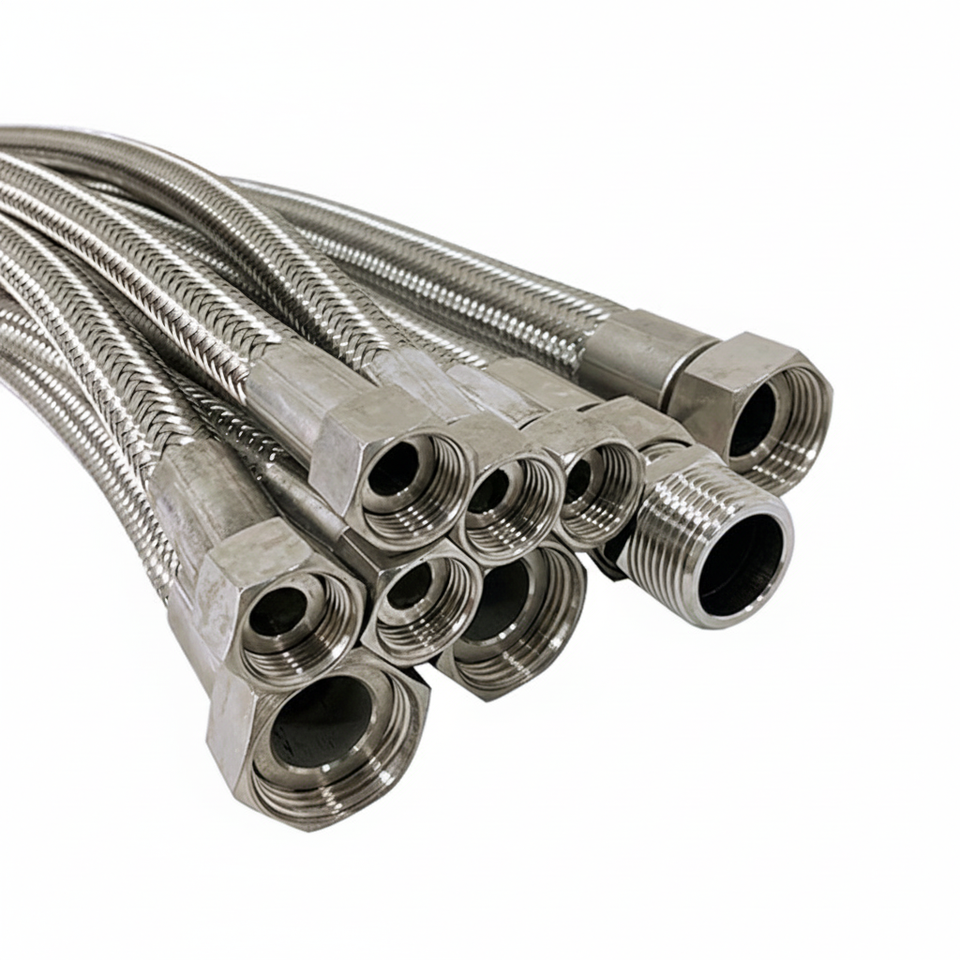 PTFE Braided Hose SAE100 R14 High Temperature Pressure Stainless Steel Wire 304 AN4 Convoluted Durable For Medical Devices