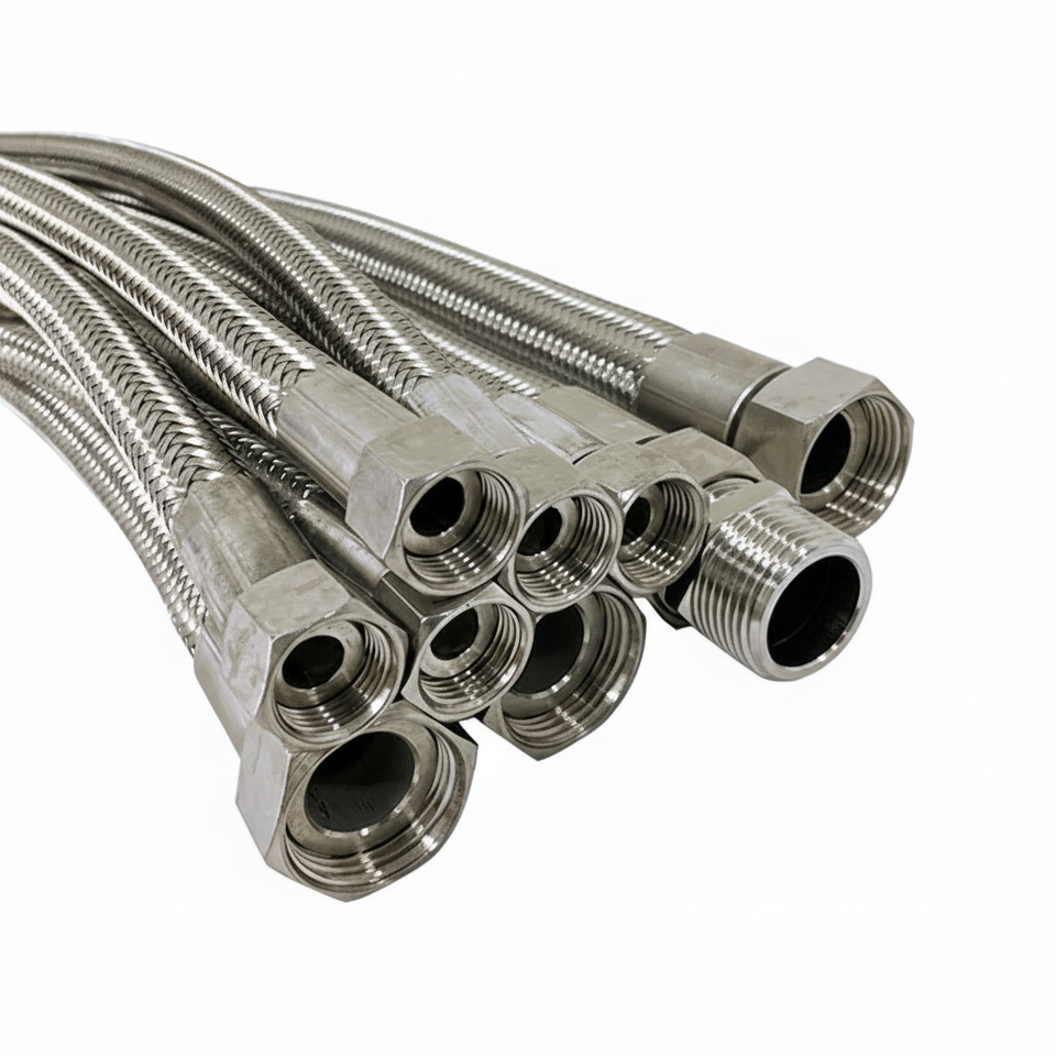 ท่อถัก PTFE R14 SAE100แรงดันสูงที่อุณหภูมิสูงสายสแตนเลส304 AN4ยืดหยุ่นปรับได้สำหรับปั้มน้ำมัน