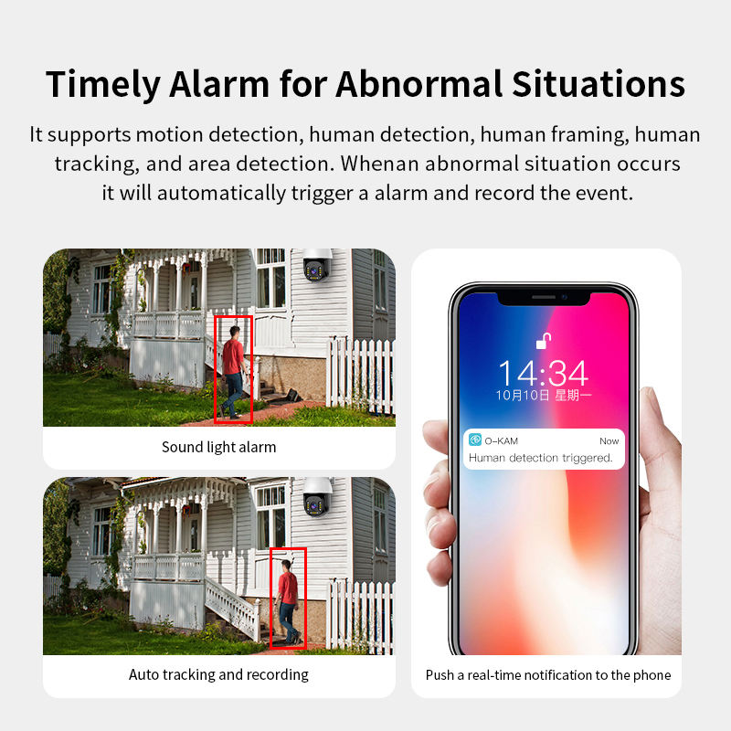 มนุษย์การติดตามการเคลื่อนไหว, ในตอนกลางคืน, การตรวจจับการเคลื่อนไหว, กันน้ำ / ฝนและแดด, Built-in ไซเรน, PAN-TILT, 2-Way Audioคุณสมบัติพิเศษ