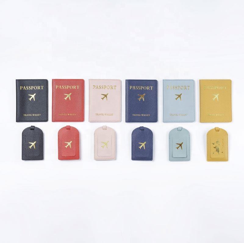 ชุดอุปกรณ์เสริมหนัง PU ป้ายใส่บัตรผ่านขึ้นเครื่องปั๊มร้อนป้ายหนังสือเดินทางกระเป๋าเดินทางเพื่อความสะดวกในการเดินทางสำหรับของขวัญส่งเสริมการขาย