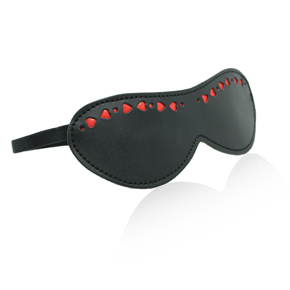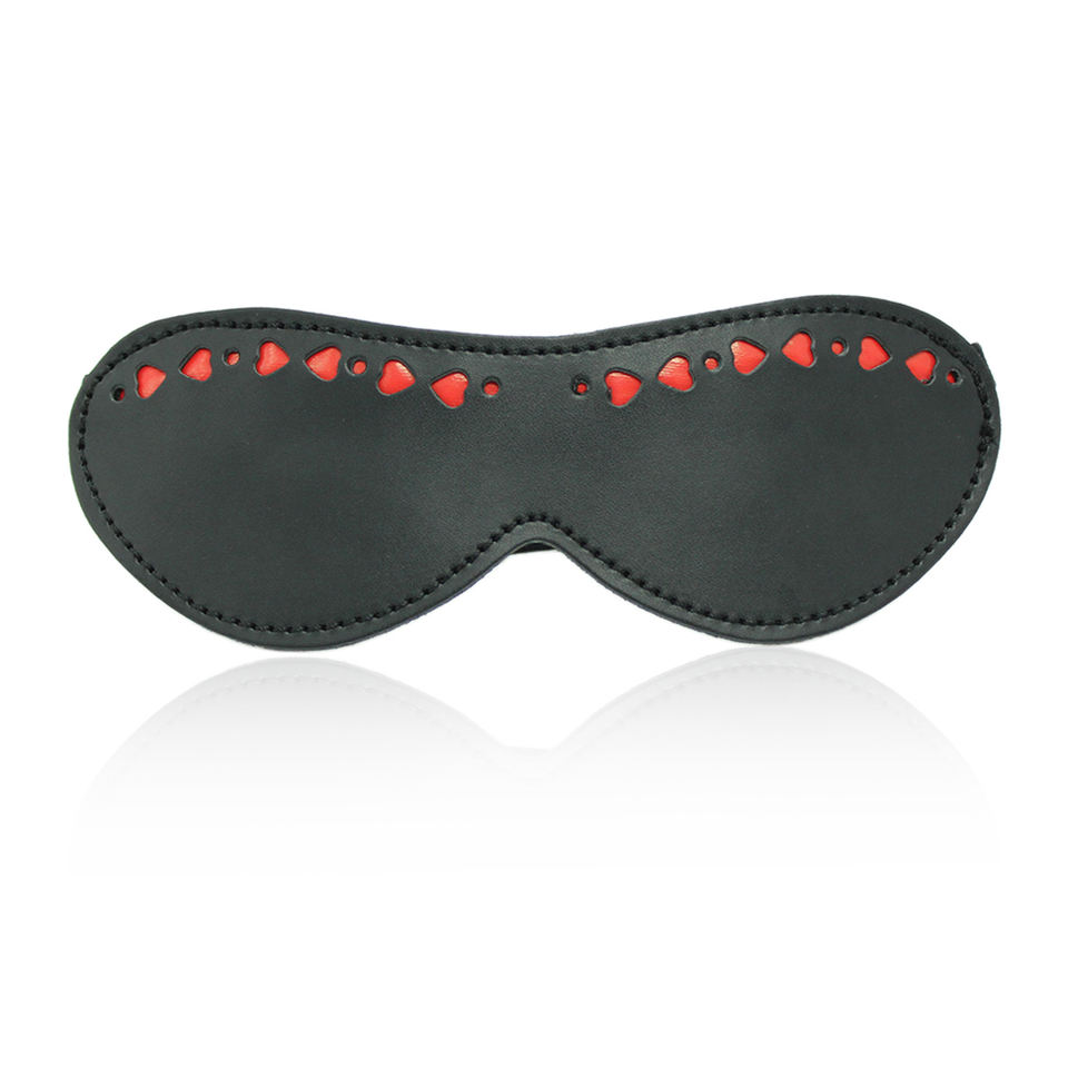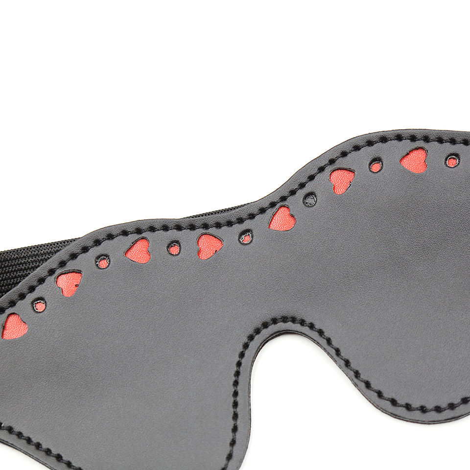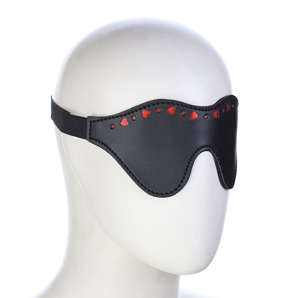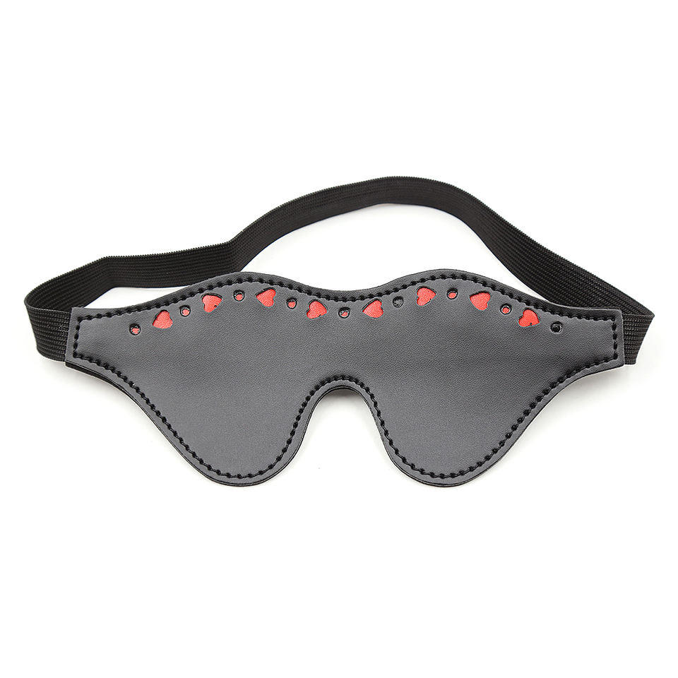 PU Leather Blindfold Sex Eye Mask Flirt Masquerade Cosplay Bondage Toy for Couples Adult Games Accessory Black with Red Hearts