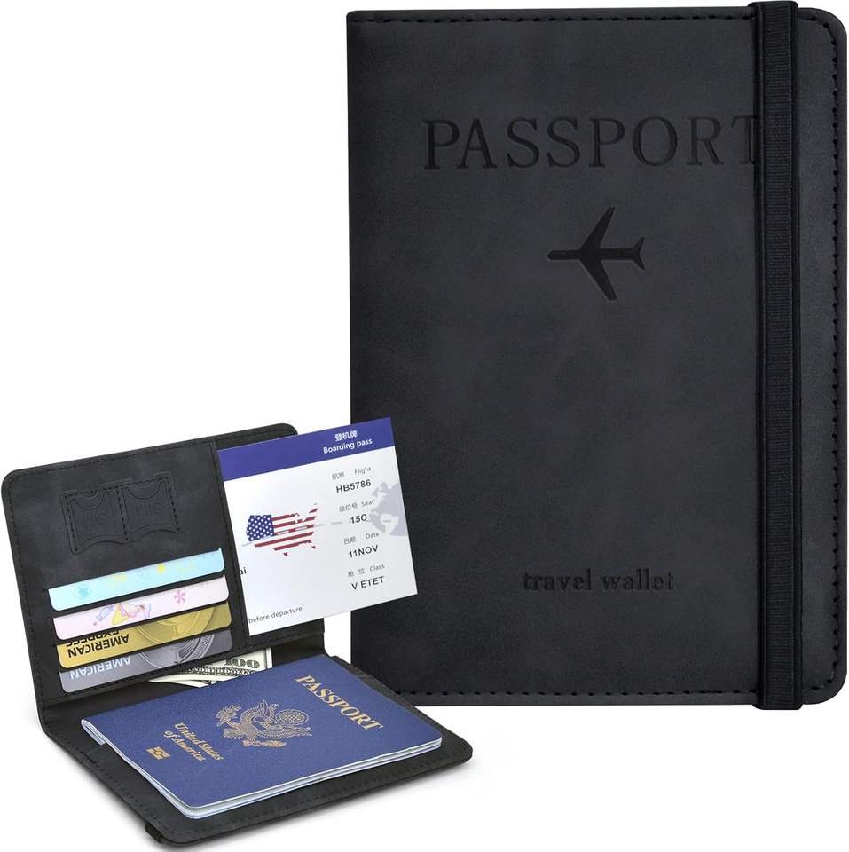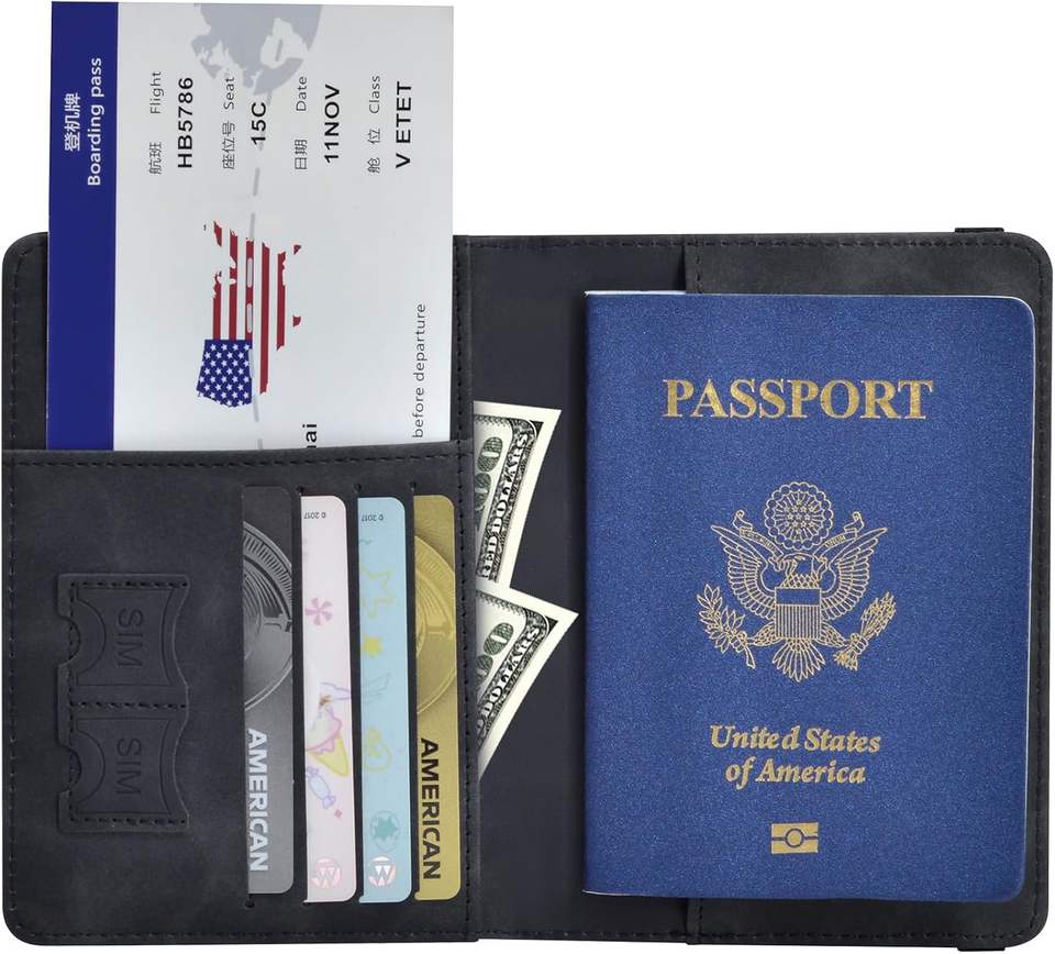 กระเป๋าใส่พาสปอร์ตและบัตรหนัง PU ป้องกัน RFID แบบไม่มีฝาปิด สำหรับผู้หญิงและผู้ชาย อุปกรณ์จำเป็นสำหรับการเดินทาง