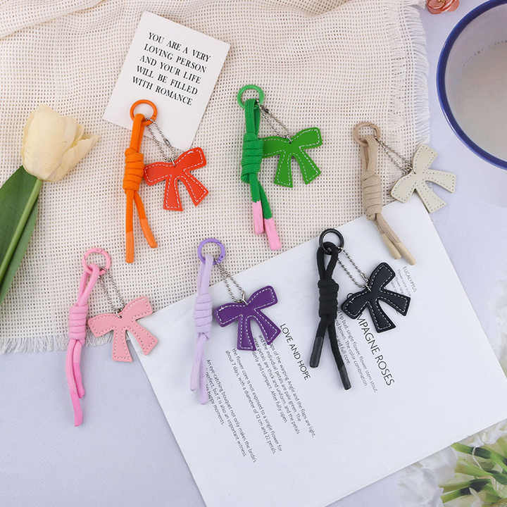 พวงกุญแจหนัง PU ดีไซน์โบว์สวยงาม คุณภาพสูง พร้อมห่วงกุญแจสแตนเลส แฟชั่นใหม่ ตกแต่งกระเป๋าเป้