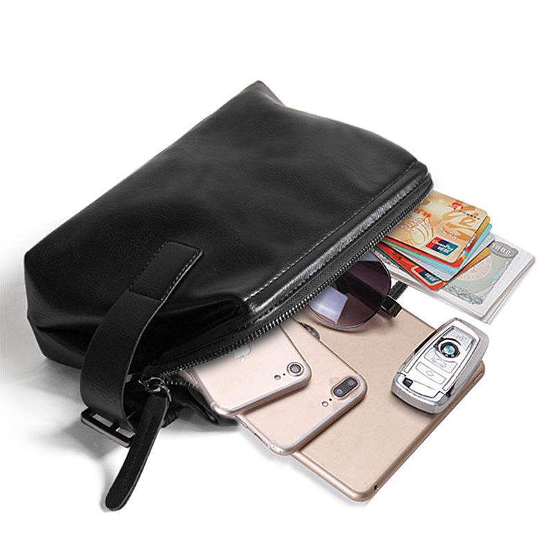 กระเป๋าคลัทช์หนัง PU สำหรับผู้ชาย กระเป๋าใส่บัตรธุรกิจแฟชั่น กระเป๋าถือขนาดใหญ่สำหรับผู้ชาย