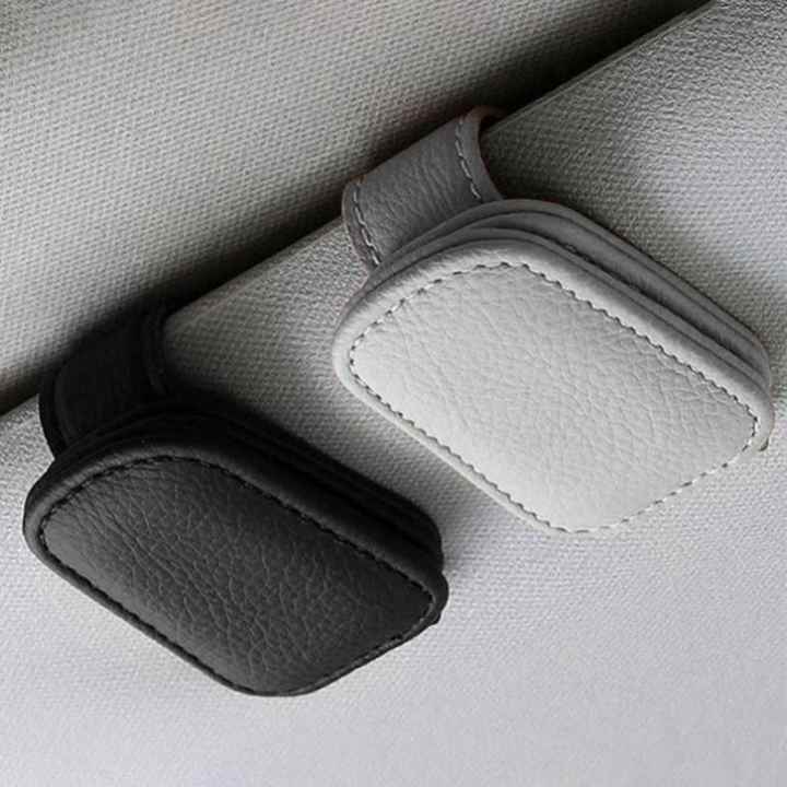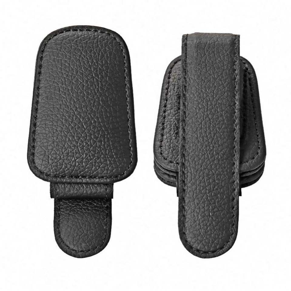 คลิปหนีบแว่นตาหนัง PU สำหรับรถบ้าน ที่บังแดด ที่เก็บบัตรแบบพับได้อเนกประสงค์ แม่เหล็กดูดติดแน่น สะดวกในการจัดเก็บ