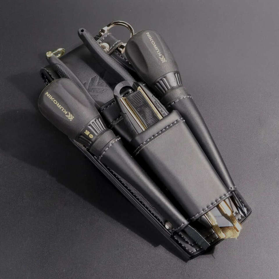 ที่ใส่คีมไขควงหนัง PU KUROKIN AH-72BG | ซองใส่เครื่องมือคาดเอว | ไขควง 2 ชิ้น + คีม 2 ชิ้น (ความจุ) | กันน้ำ |