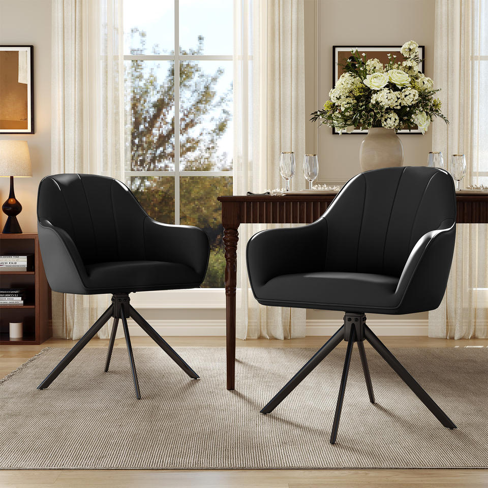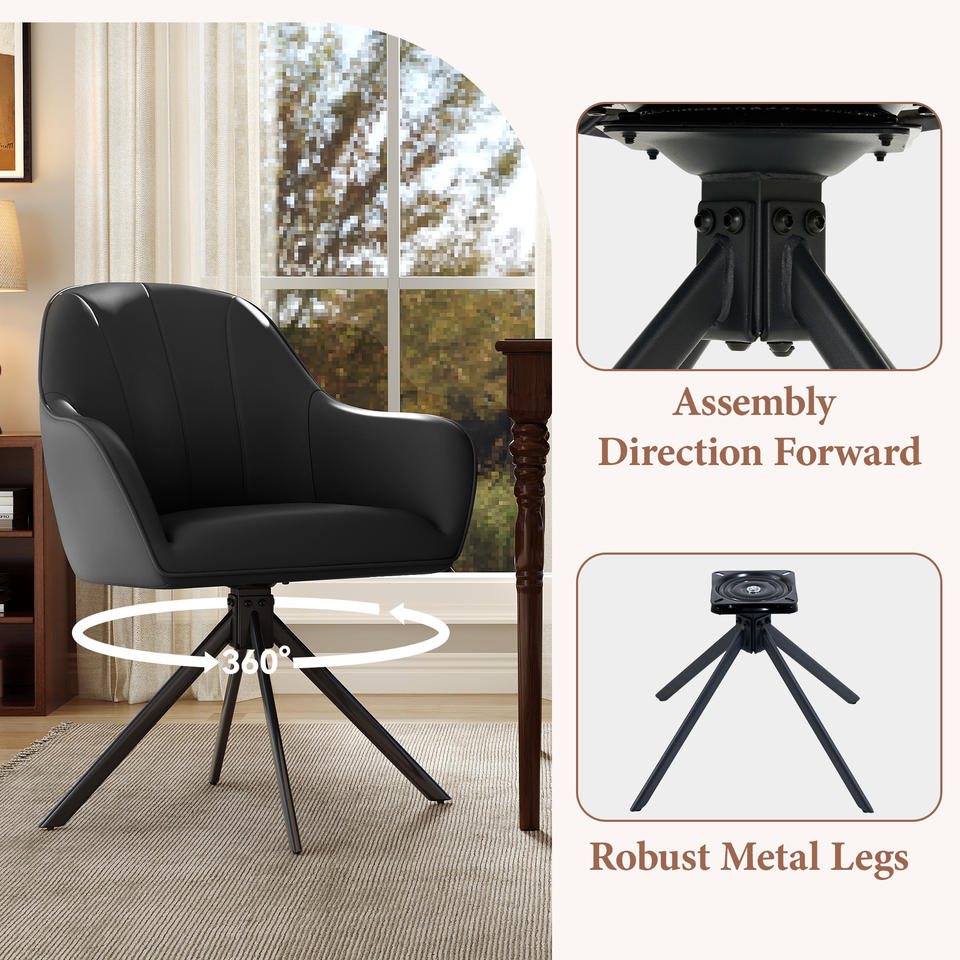 เก้าอี้รับประทานอาหารปรับเอนได้ หมุนได้ หุ้มด้วยหนัง PU ทันสมัย ดีไซน์ตามหลักสรีรศาสตร์ พร้อมขาโลหะแข็งแรง สำหรับห้องรับประทานอาหารและสำนักงาน