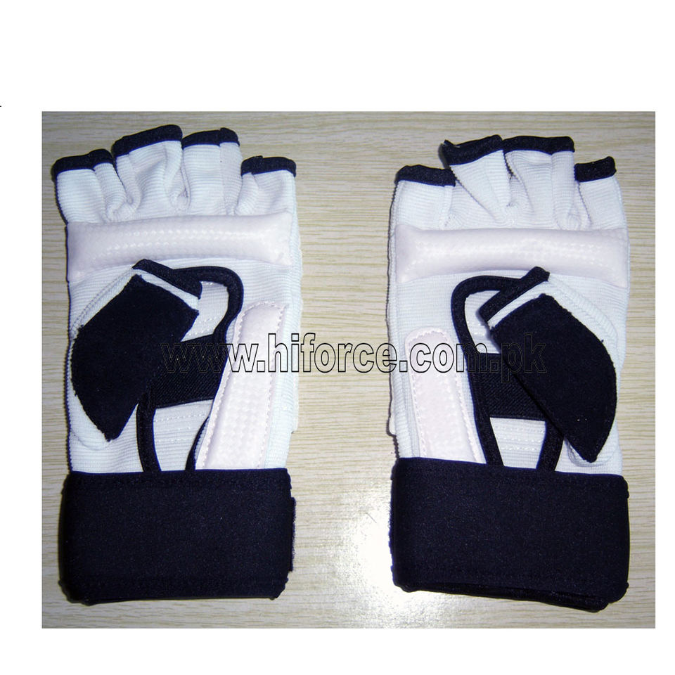 ถุงมือเทควันโดหนัง PU,ที่ป้องกันมือซ้อมคาราเต้ครึ่งนิ้วศิลปะการต่อสู้ WTF TKD