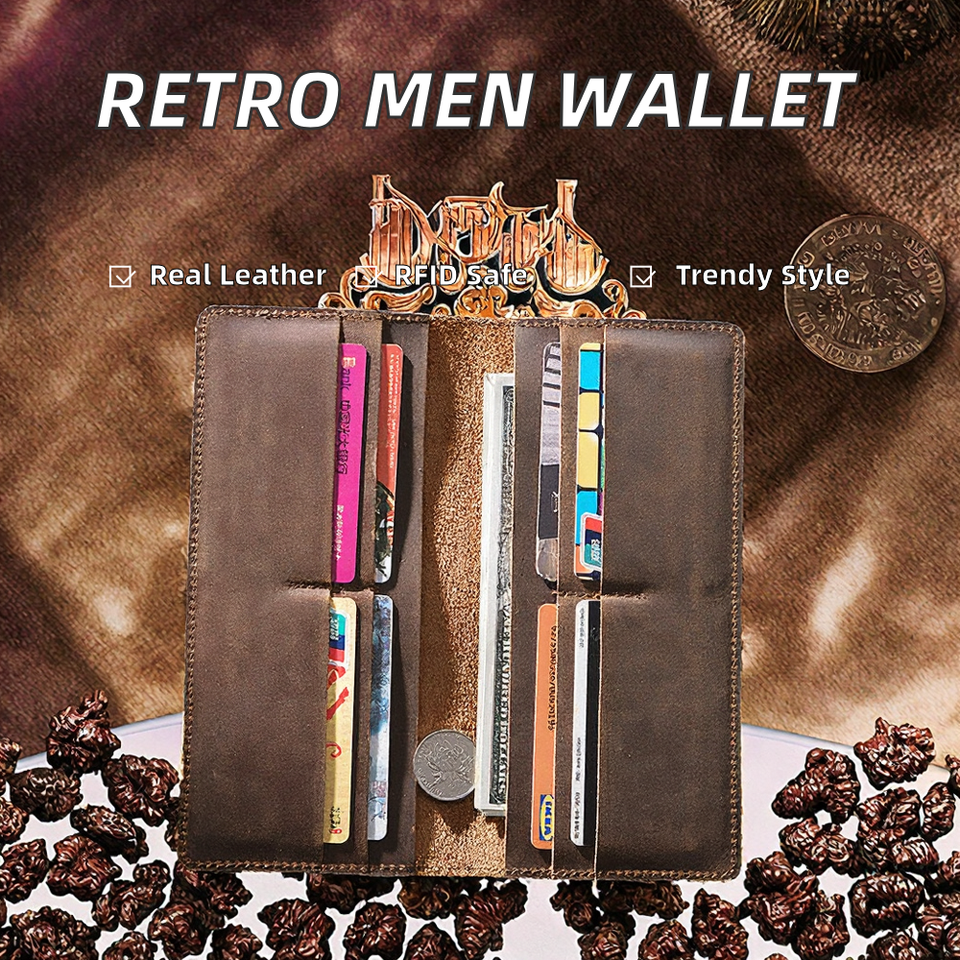 กระเป๋าใส่เหรียญหนัง PU วินเทจ ป้องกัน RFID ลาย Crazy Horse ซับในโพลีเอสเตอร์ แบบเปิด ปิดสั้น