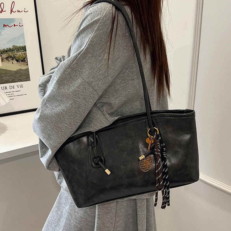 กระเป๋าถือสะพายไหล่/สะพายข้าง หนัง PU แฟชั่น Y2K สำหรับผู้หญิง พร้อมซิปปิด ความจุขนาดใหญ่ สีพื้น ดีไซน์เรโทร