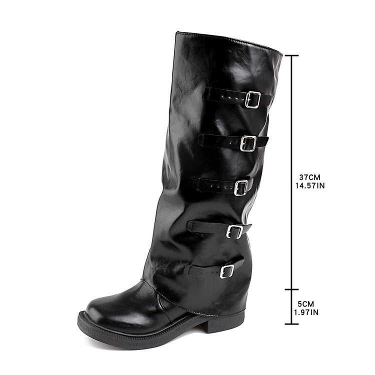 PU Low Heel (1-3cm) Winter Boots with High Tube Knee-High Western Style Pointed Toe Zip Closure Flat Light Feature Rubber Insole