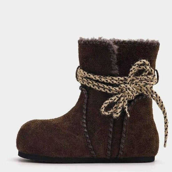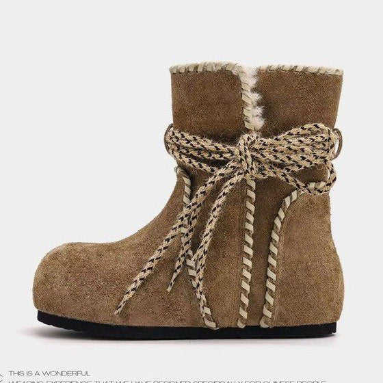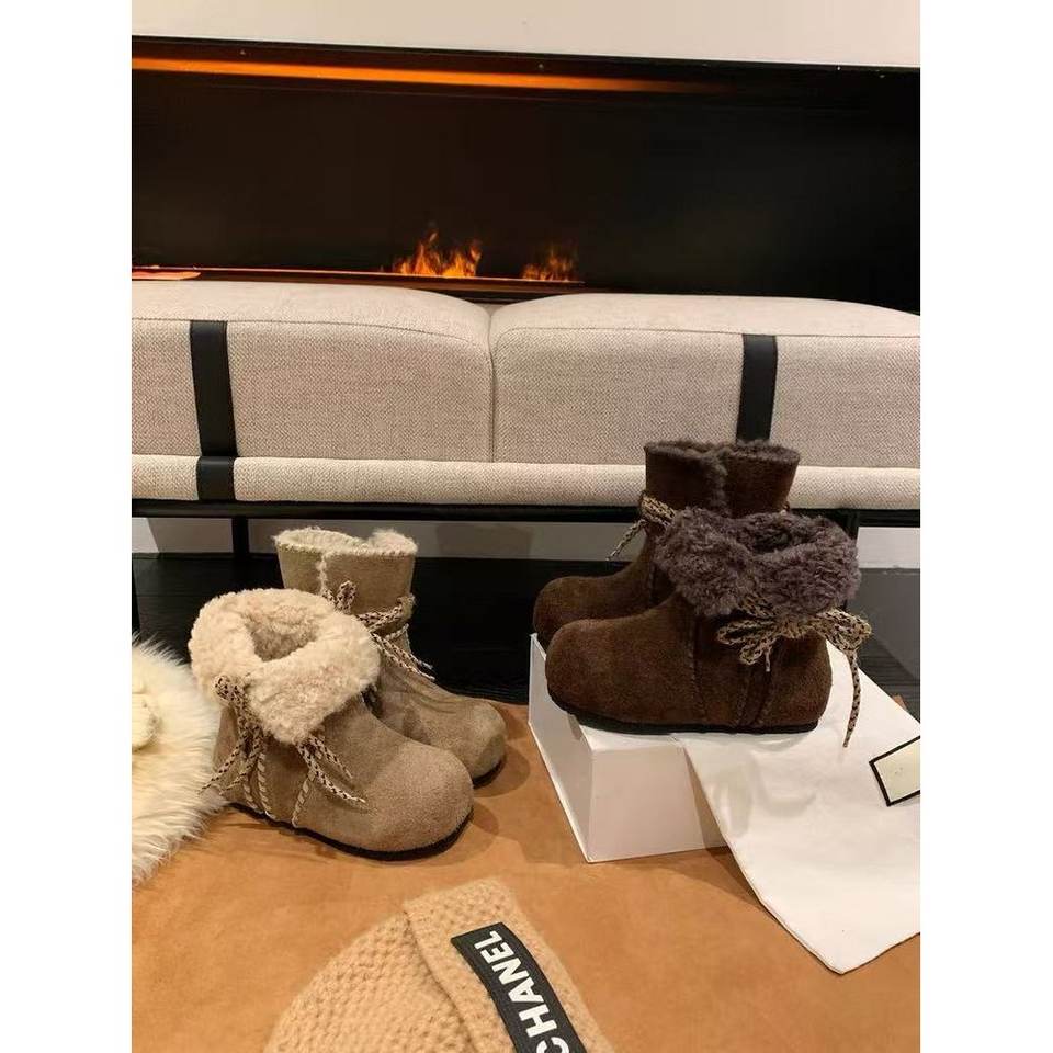 รองเท้าบูทข้อสั้นทรงกลมหัวมน พื้นยาง ขนเทียม สำหรับฤดูหนาว ส้นกลาง (3-5 ซม.) แฟชั่น