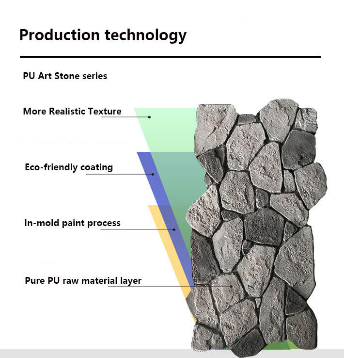 แผงหินโพลียูรีเทนน้ำหนักเบาพิเศษติดตั้งได้รวดเร็วหินเทียมทำจากหิน PU