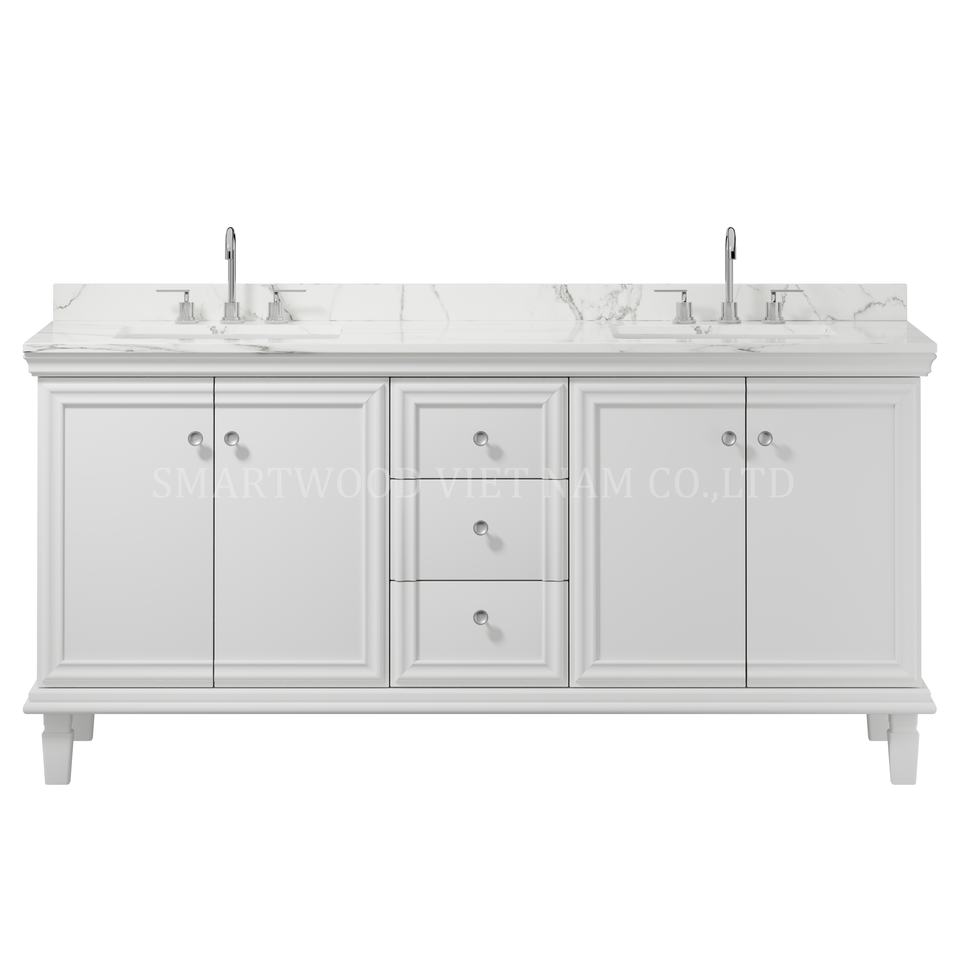 ตู้ไม้ไม้อัดทาสี PU/UV กันน้ำแบบตั้งได้สำหรับห้องน้ำอ่างล้างหน้าพอร์ซเลนทำความสะอาดง่าย