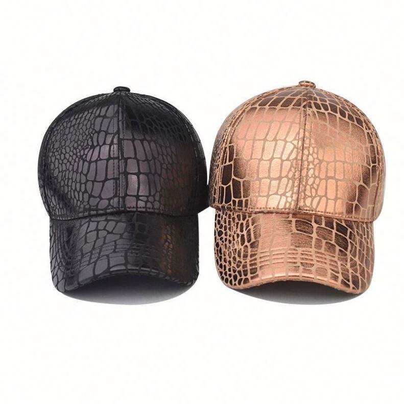 หมวกหนังจระเข้ PU สำหรับผู้ชาย หมวกเบสบอลสีโรสโกลด์สดใส หมวกเบสบอล หมวกกีฬาเฉพาะทาง