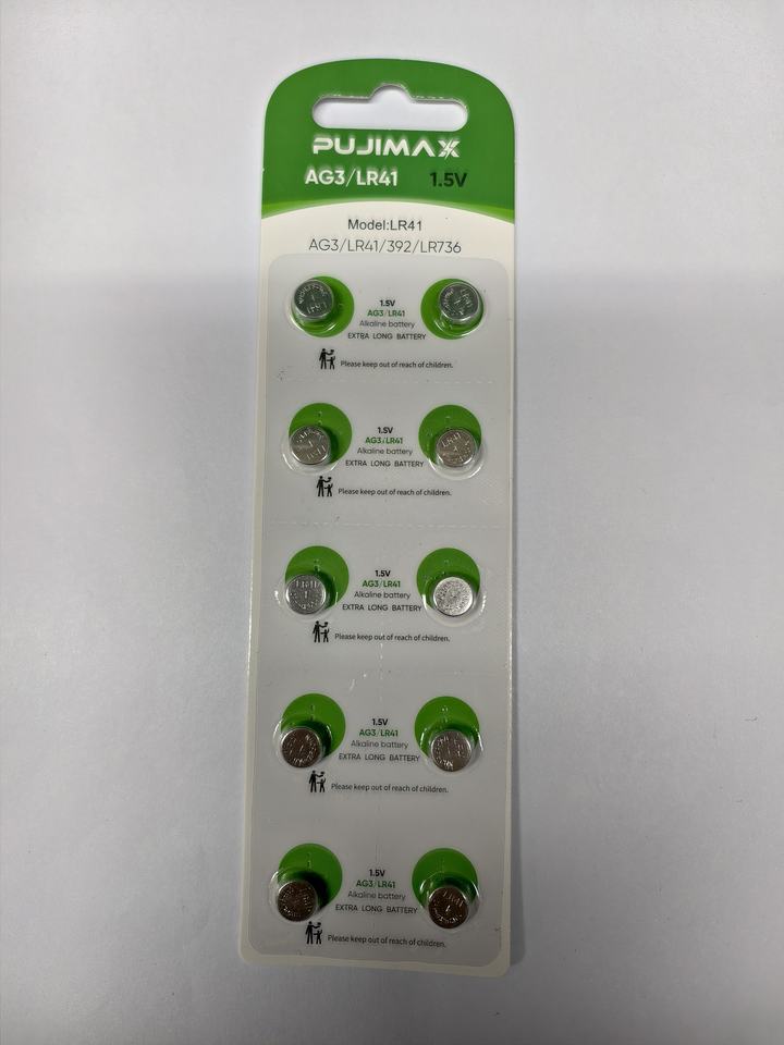 PUJIMAX แบตเตอรี่อัลคาไลน์ AG3 LR41 1.5 โวลต์ L736 392 จำนวน 10 ก้อน สำหรับนาฬิกาอัจฉริยะและรีโมทคอนโทรล แบตเตอรี่ชนิดกระดุม