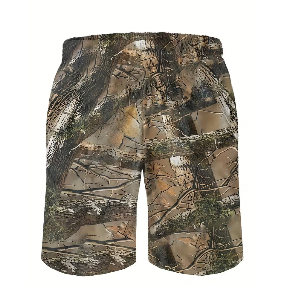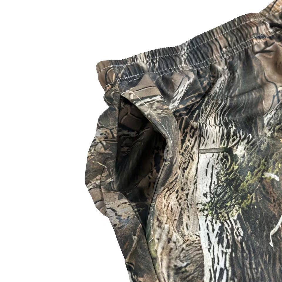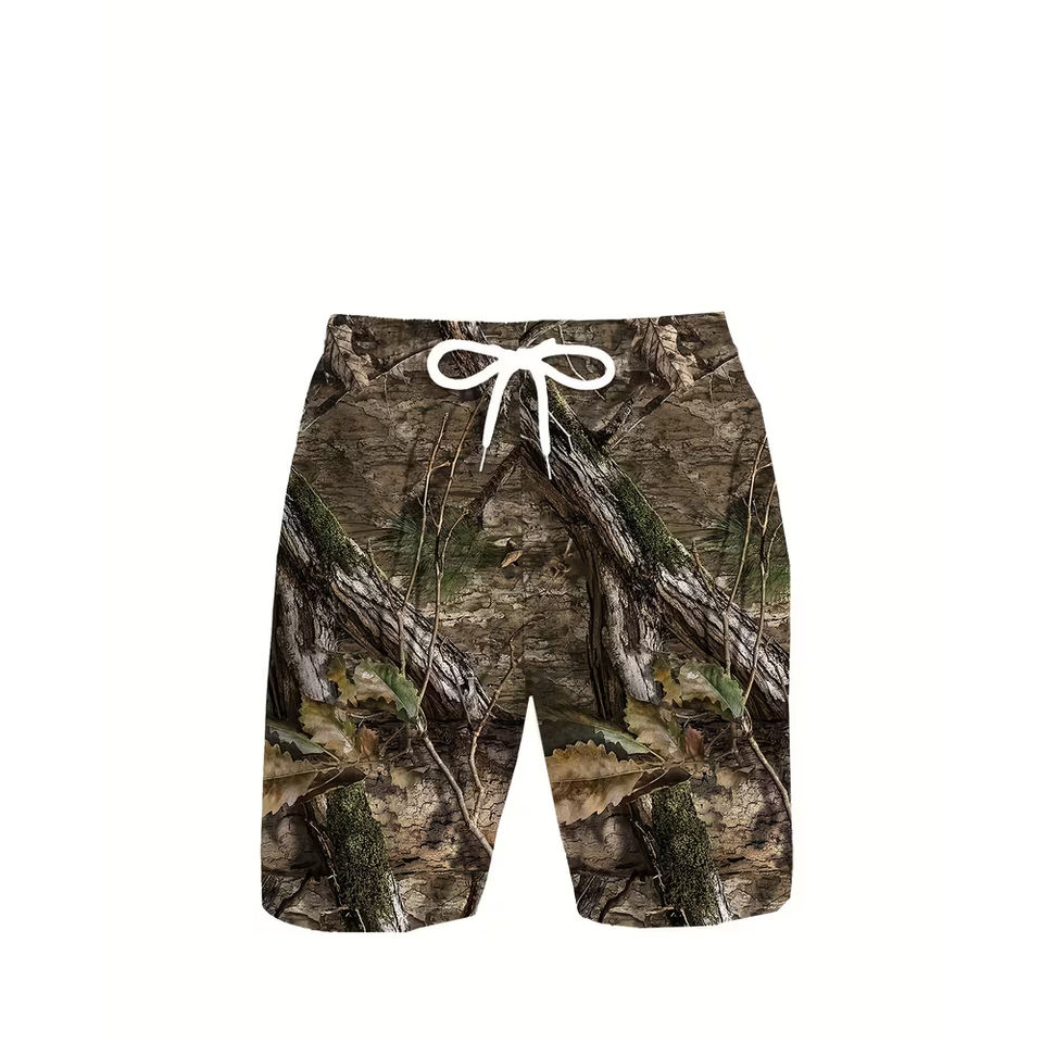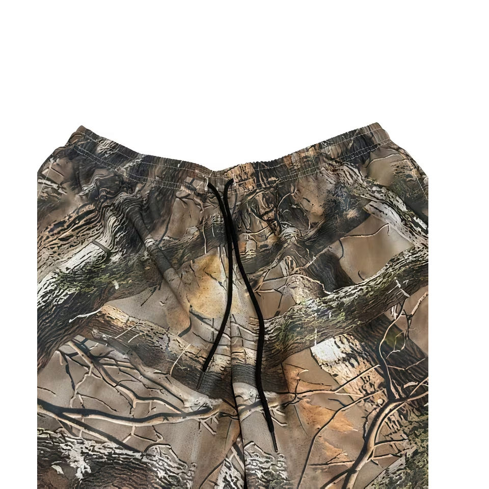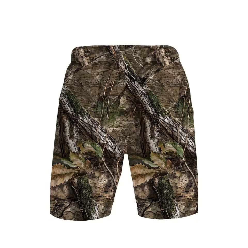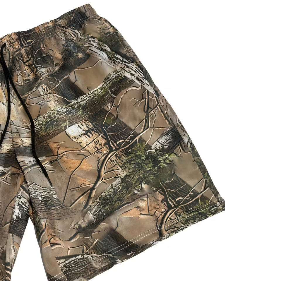 PURE Custom Wholesale Men's Heat-Transfer Printed Canvas Polyester Summer Hunting Truck Car Workout Daily Breathable Leaf Shorts