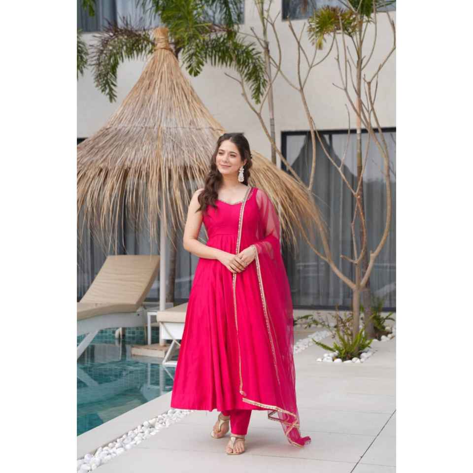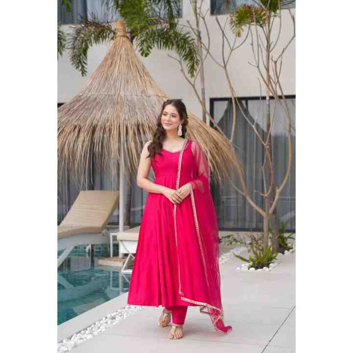 ชุดแอนาร์กาลีผ้าชันเดรีไหมแท้แบบพลิกกลับด้าน พร้อมผ้าคลุมไหล่ แบบสำเร็จรูปสำหรับงานปาร์ตี้