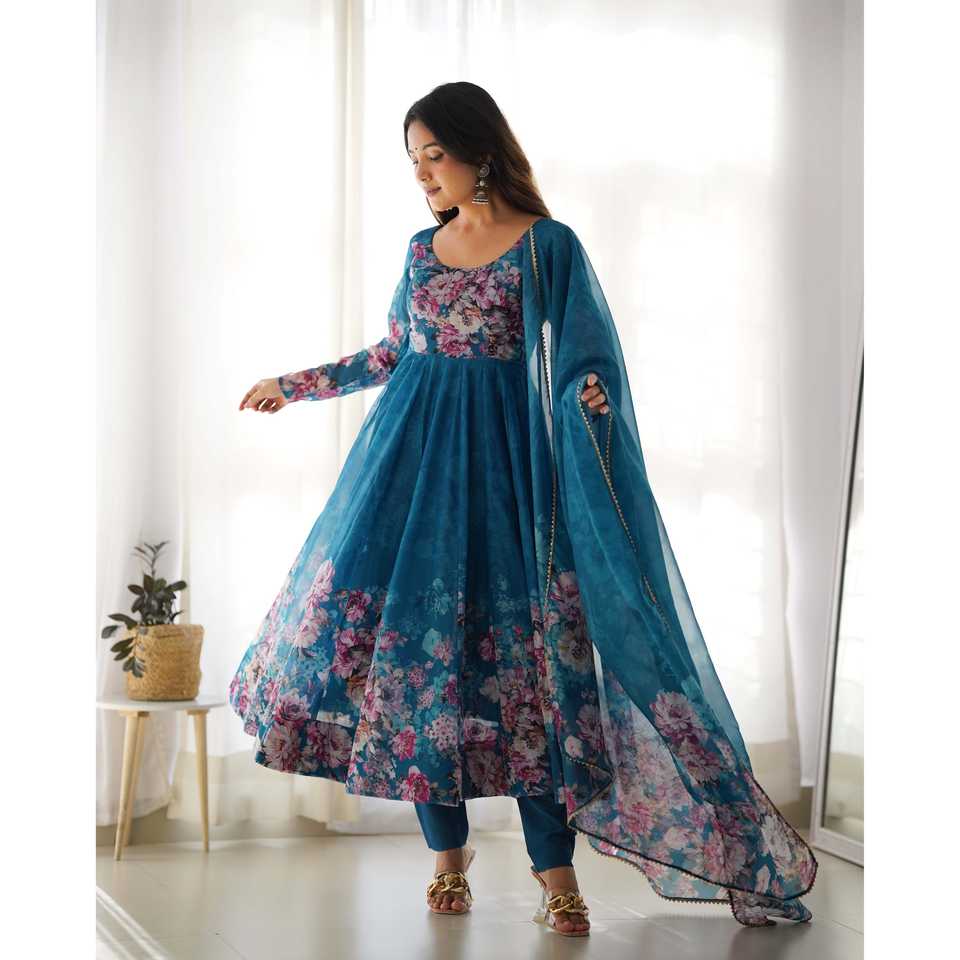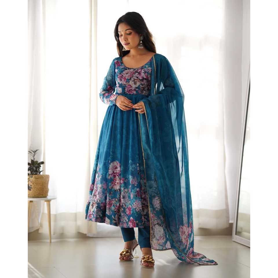 ชุดสูท anarkali organza นุ่มบริสุทธิ์พร้อมผ้า DKB -261 rama