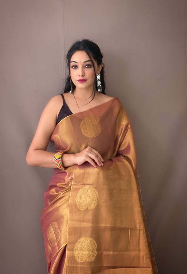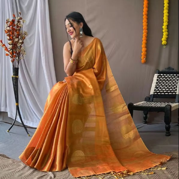 ส่าหรีผ้าไหมทิชชู่แท้กับซาริทอปราศจากริ้วรอยปาร์ตี้สวมใส่ได้ทุกฤดู