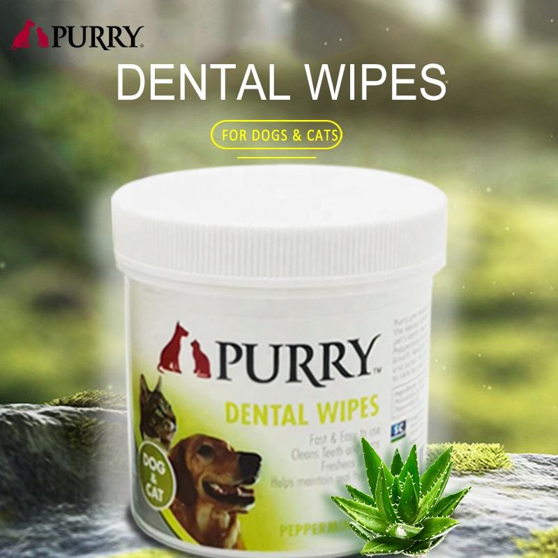ผ้าเช็ดทำความสะอาดฟันสำหรับสัตว์เลี้ยง PURRY รสเปปเปอร์มินต์ สูตรอ่อนโยน ขนาด 100 ชิ้น เส้นผ่านศูนย์กลาง 5.4 ซม. สำหรับแมวและสุนัข ช่วยให้ลมหายใจสดชื่น ยอดนิยม ขายดีที่สุด