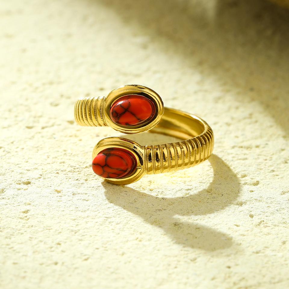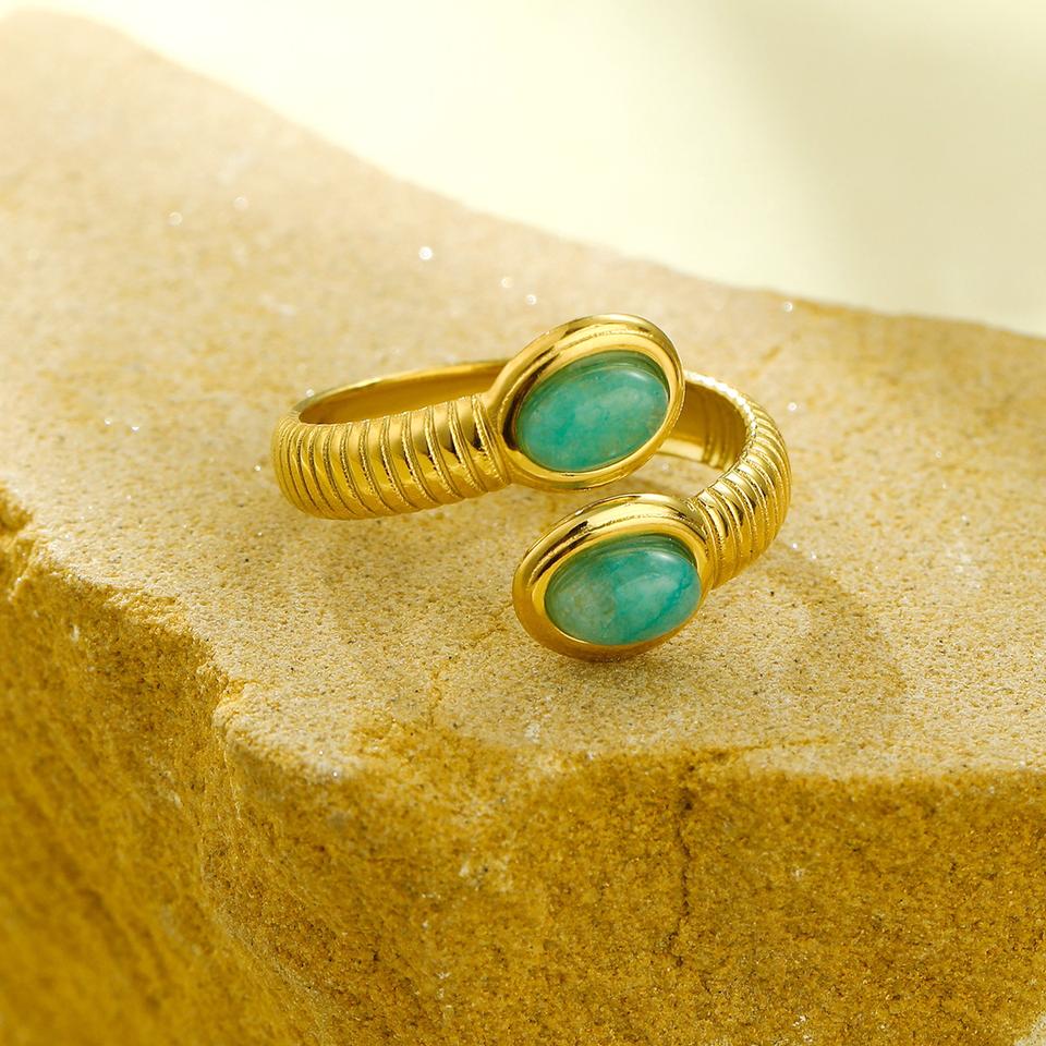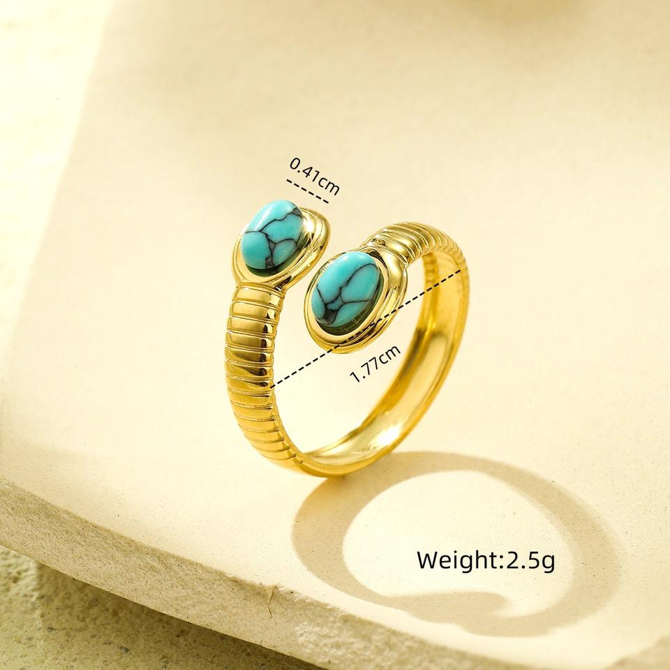 แหวนสแตนเลสสตีลชุบทอง 18K PVD ยี่ห้อ PUXIN ดีไซน์งูเปิดวง แหวนลายเท็กซ์เจอร์ทันสมัย กันน้ำ ประดับด้วยพลอยเทอร์ควอยซ์ทรงรี