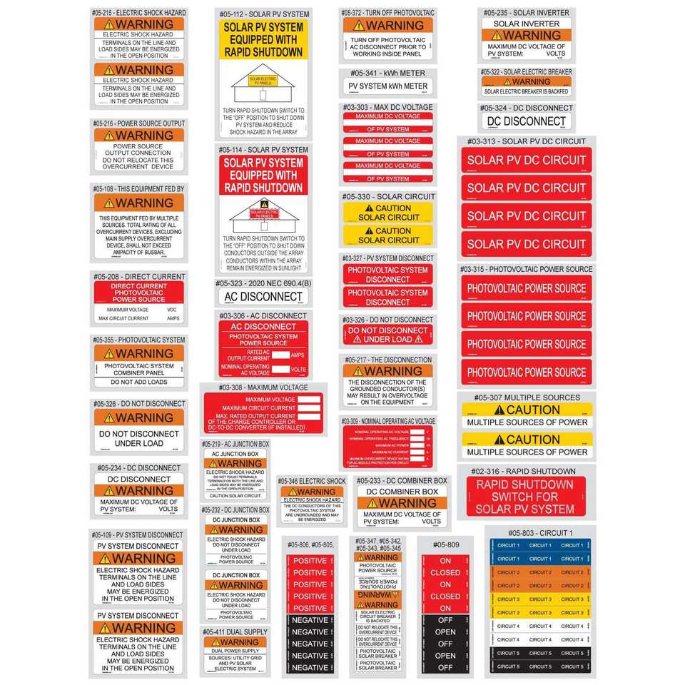 ป้าย PV มีกาวสูง2020ป้ายเตือนพลังงานแสงอาทิตย์ที่สอดคล้องกับเอ็นอีซี-05-520 2020