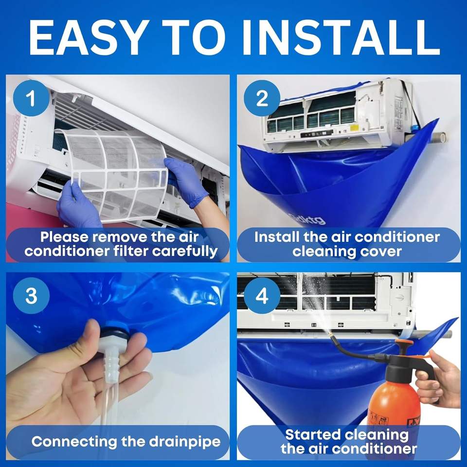 ฝาครอบทำความสะอาดพีวีซี AC เครื่องปรับอากาศกันน้ำทำความสะอาดชุดทำความสะอาดขนาดเล็ก HVAC พร้อมถุงเก็บ (ขนาดใหญ่)