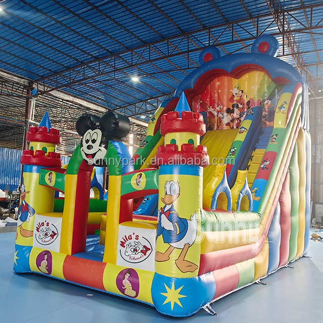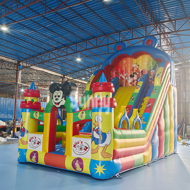 แผ่นสไลด์เป่าลมสำหรับเด็กลายการ์ตูนมิกกี้ลมใหญ่แห้งลายมิกกี้ทำจาก PVC