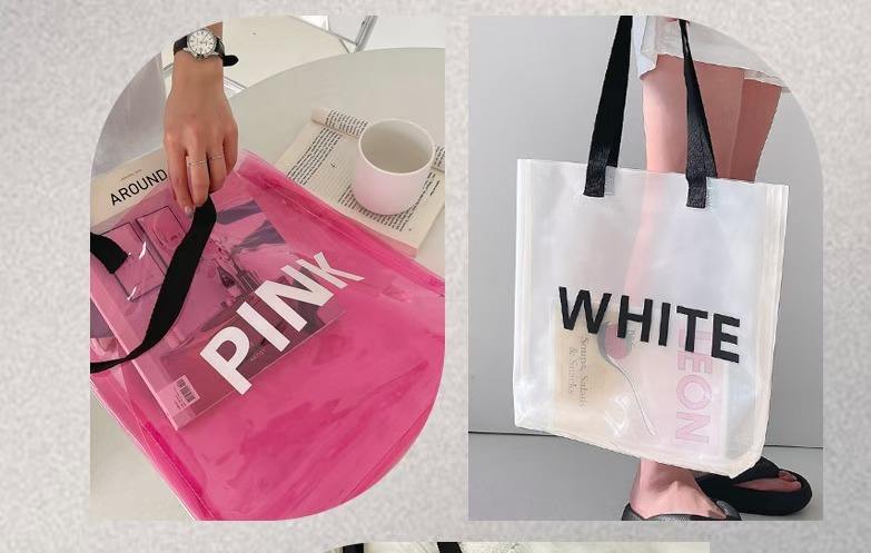กระเป๋าหิ้วใส PVC แบบใส ขนาดกลาง สำหรับทุกเพศ เหมาะสำหรับใส่ของขวัญ ขนม เยลลี่ ไปทะเล พิมพ์ลาย UV ได้ ปรับแต่งได้ ใช้ได้ทุกวัน สำหรับช้อปปิ้ง