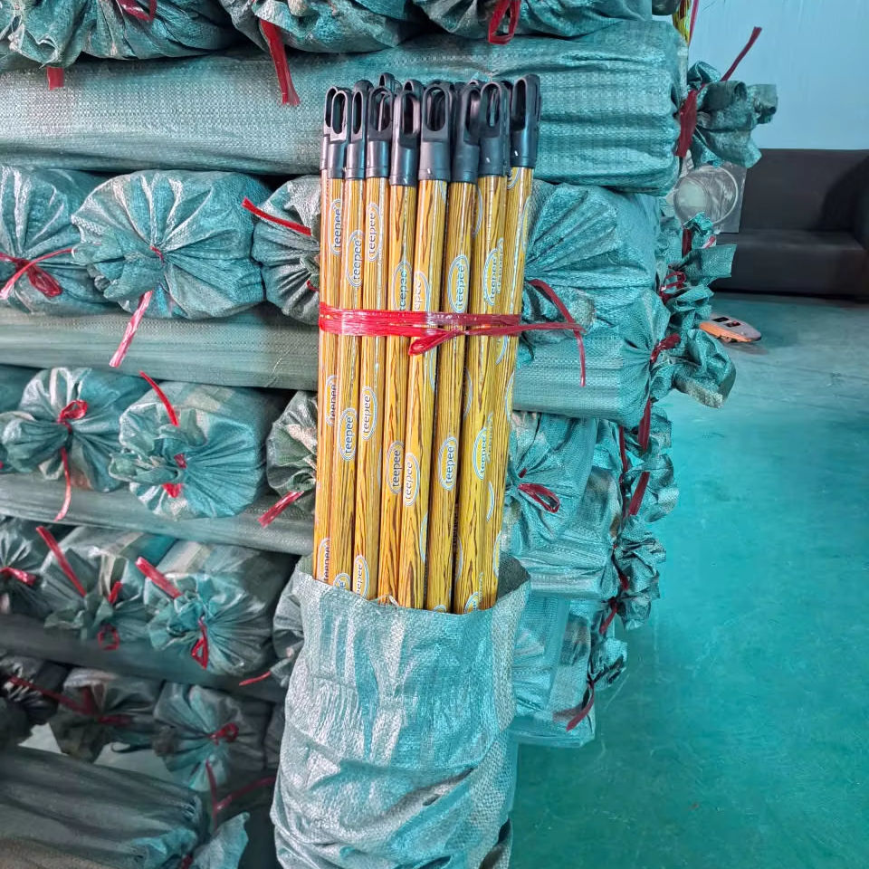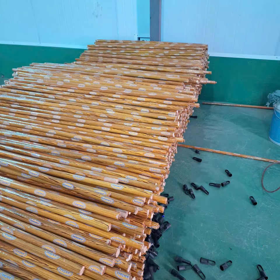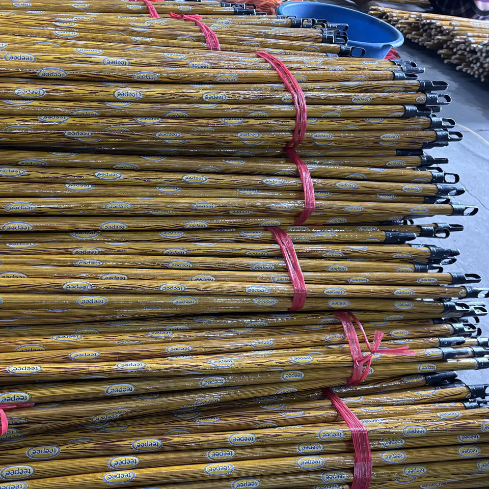 ด้ามไม้กวาดยูคาลิปตัสเคลือบพีวีซี ลายไม้ พร้อมพิมพ์โลโก้ตามสั่ง