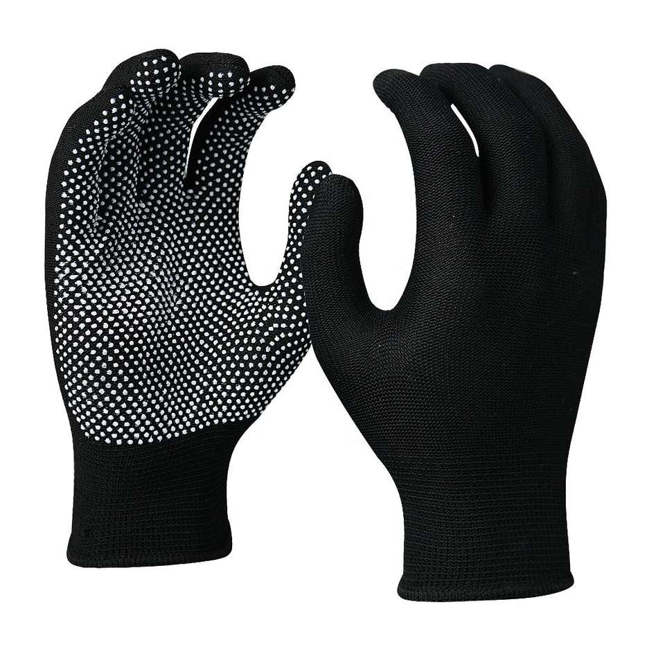 ถุงมือโพลีเอสเตอร์กันลื่นแบบมีจุด PVC ที่ฝ่ามือ ระบายอากาศได้ดี ไม่เป็นขุย ใช้ซ้ำได้ ถุงมือทำงาน ข้อมือแบบยืดหยุ่น ขนาดมาตรฐาน