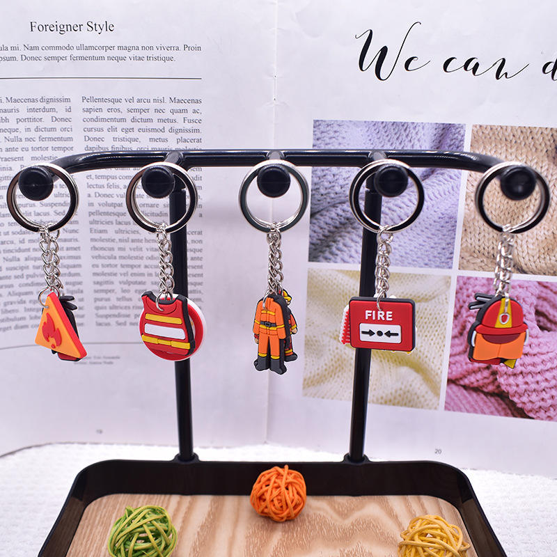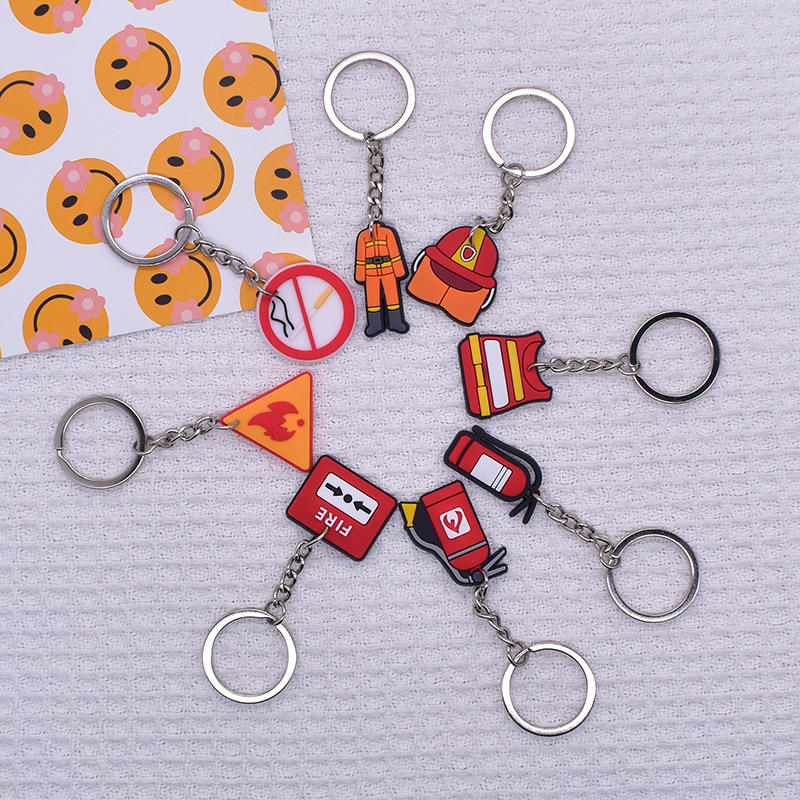 พวงกุญแจนักดับเพลิง PVC ชุด DIY จี้การ์ตูนขนาดเล็กสำหรับกระเป๋าเป้ กุญแจ กิจกรรมสนุกๆ และของขวัญสำหรับงานปาร์ตี้