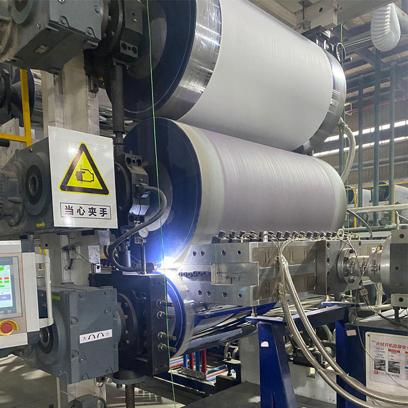 PVC HDPE LPE TPU TPU LDPE โพลิเมอร์กันน้ำเมมเบรนสายการผลิตมอเตอร์สกรูเดี่ยวแบบอัตโนมัติเต็มรูปแบบ