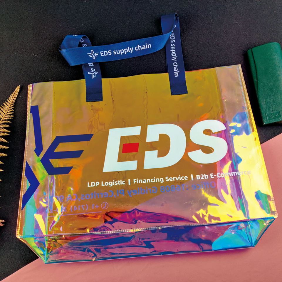 กระเป๋าโท้ท PVC เลเซอร์ใสกระเป๋าใสแบบโฮโลแกรมกระเป๋าถือแฟชั่นสะท้อนแสงสีรุ้งความจุขนาดใหญ่สำหรับผู้หญิง