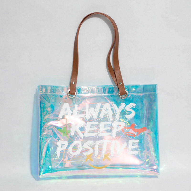 กระเป๋าถือสะพายไหล่ผู้หญิงลายเลเซอร์ PVC โฮโลแกรม กันน้ำ ทนทาน กระเป๋าช้อปปิ้งขนาดใหญ่ ใส่ของได้เยอะ