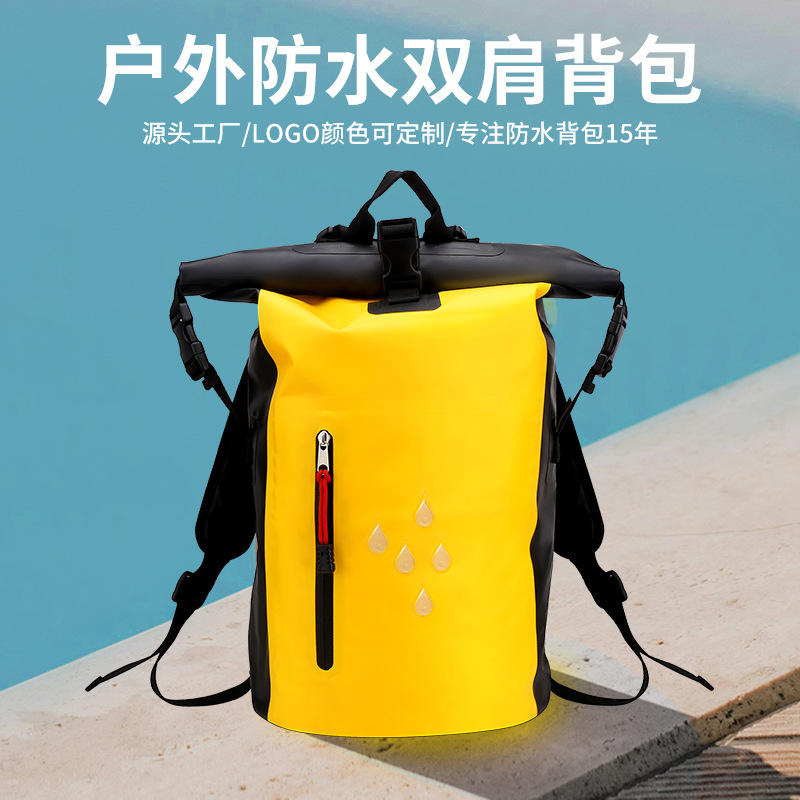 กระเป๋าเป้กันน้ำสำหรับกิจกรรมกลางแจ้ง ทำจากวัสดุ PVC แข็งแรงทนทาน เหมาะสำหรับการเดินป่า ล่องแก่ง ลุยป่าฝน และกิจกรรมทางน้ำ