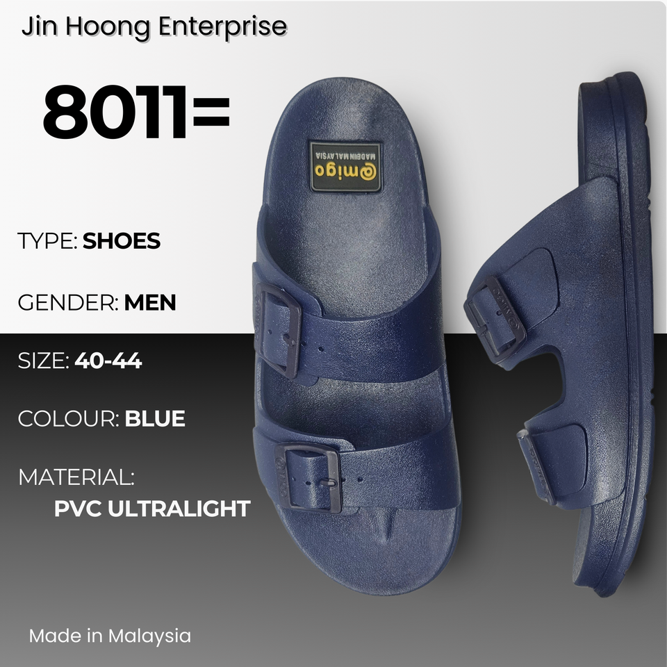 รองเท้าแตะ PVC แบบสวมสำหรับผู้ชาย สีน้ำเงิน น้ำหนักเบา กันลื่น สวมใส่สบาย รองเท้าลำลอง ขายส่งจำนวนมาก @migo 8011= ผลิตในมาเลเซีย